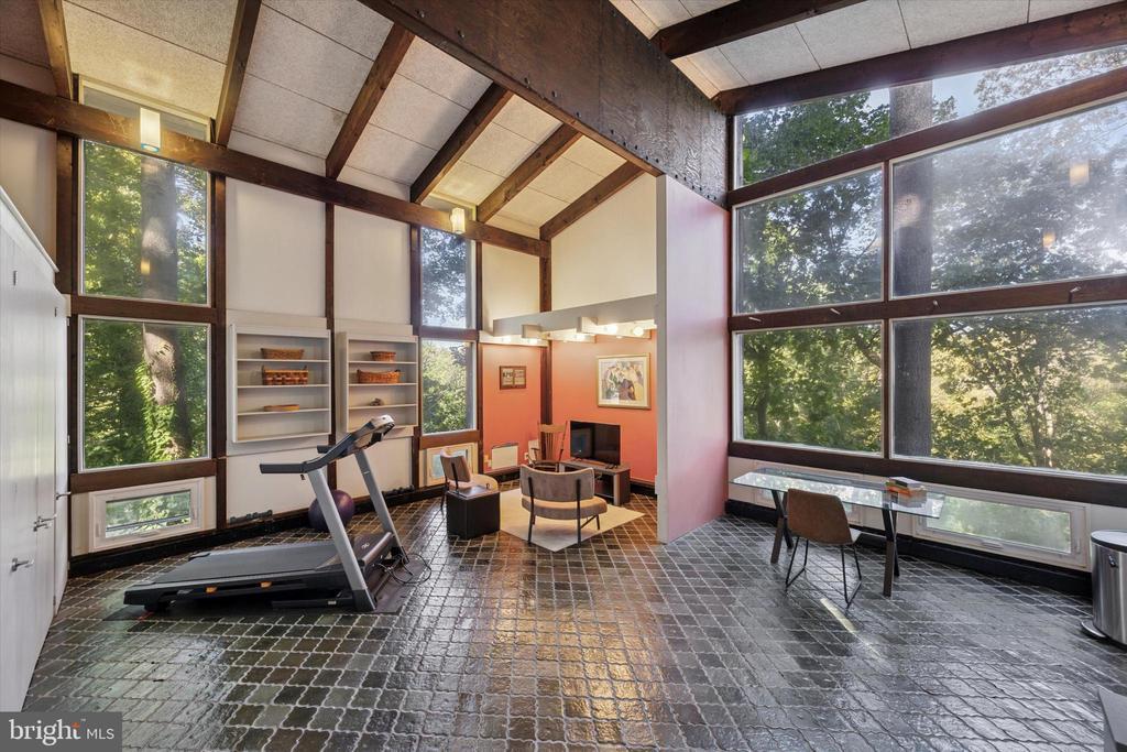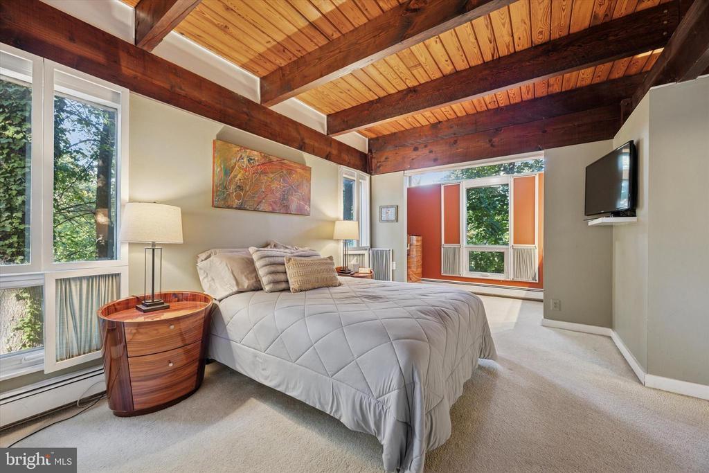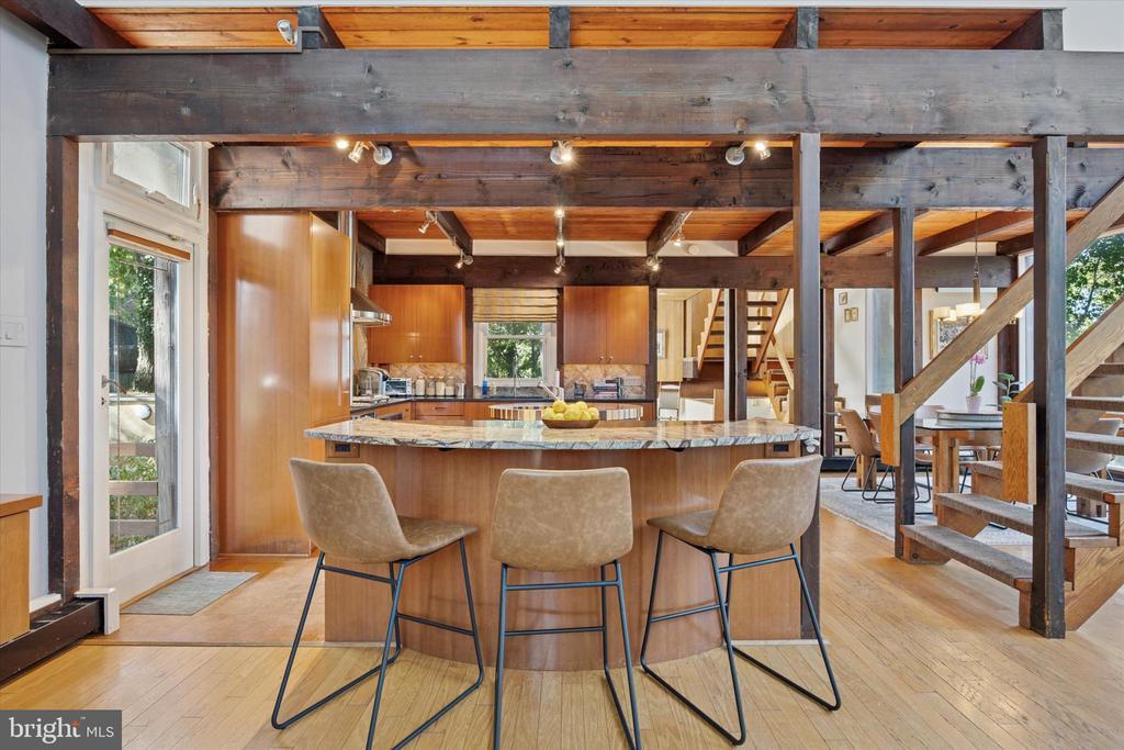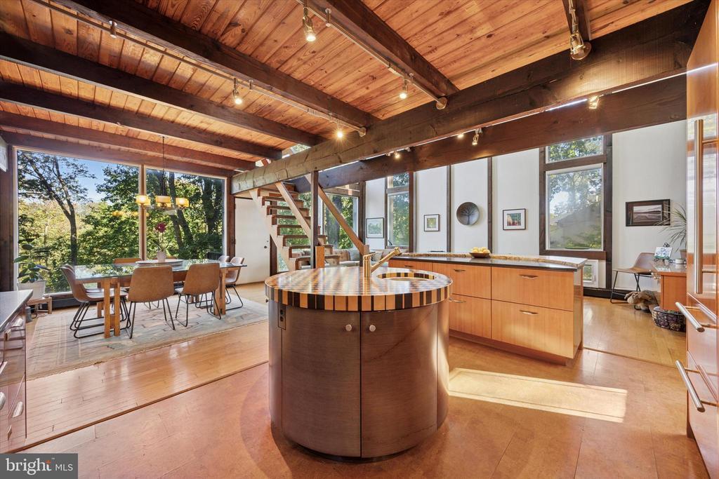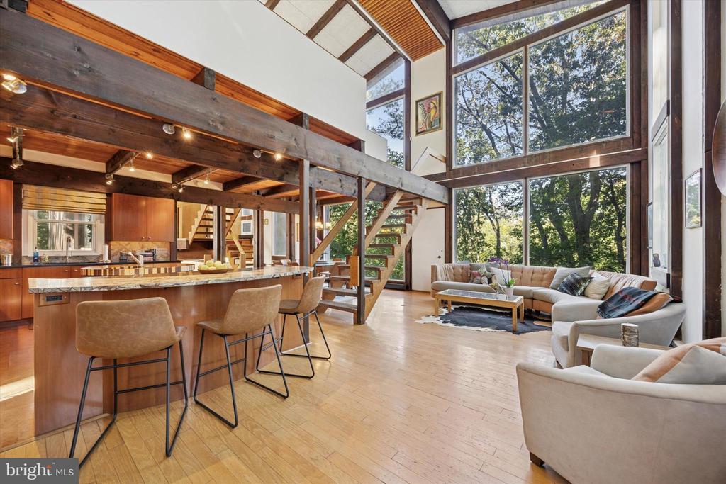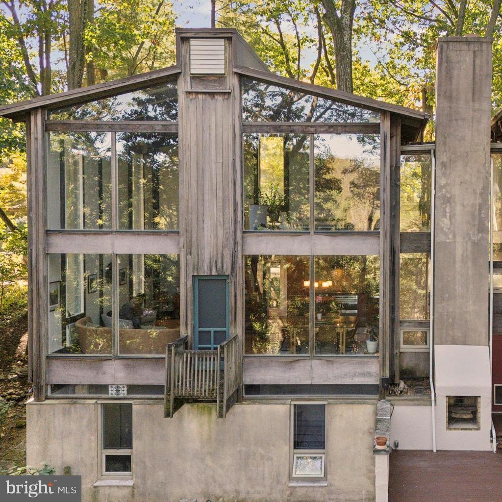 “The Tree House” — A William Alesker Masterpiece. A rare opportunity to own a dramatic and deeply personal architectural work by William Aleskeraptly named“The Tree House.”This extraordinary residence is quietly tucked into a serene enclave bordering the Curtis Dog Park and Curtis Arboretum — just a 12-minute walk away — offering privacy, nature, and timeless design in equal measure. Thoughtfully updated from top to bottom, this unique home features new baths, kitchen, roof, and updated mechanical systems, all executed with an architect’s precision and respect for the original vision. The architect even picked cypress for the exterior wood as it is termite resistant. The residence unfolds across 5 half-levels, each filled with natural light, woodland vistas, and warm beamed ceilings. The main living level is nothing short of breathtaking — a soaring two-story great room framed by dramatic windows that blur the boundary between indoors and forest. The open floor plan centers around achef’s kitchen to envy— complete with granite counter tops, a cherry and maple work island, high-end appliances, and a bespoke dining table for eight designed by Alesker himself. A four-seat bar with built-in matching Sub-Zero refrigerator drawerscompletes the kitchen andmakes for effortless entertaining or casual family meals. Each bedroom is a private retreat, two have a en-suite bath finished in natural stone and river rock, blending texture and tranquility. A versatile light filledupper-level studio — once the architect’s own workspace — offers endless potential as a family room, gym, art studio, or yoga sanctuary. A dramatic loft area overlooking the forest is perfect for curling up with a book . Multiple decks cascade through the rear landscape, creating a series of outdoor living spaces anchored by an outdoor fireplace and a whimsical chicken coop in the yard below. Off the kitchen, a screened gazebo overlooks a tranquilcascadingpond — a perfect setting for al fresco dining , BBQ or quiet sunset evenings. Additional features include an on-site generator for peace of mind during storms, a storage shed, and a dedicated workshop with adjoining storage. Conveniently located just 1.5 miles from the Jenkintown/Wyncote train station, the property also offers easy access to Route 309 in under five minutes and is only fifteen minutes from Chestnut Hill. Architectural integrity, natural beauty, and refined comfort combine seamlessly in this truly one-of-a-kind residence. Children must be with an adult at all times while on the property.