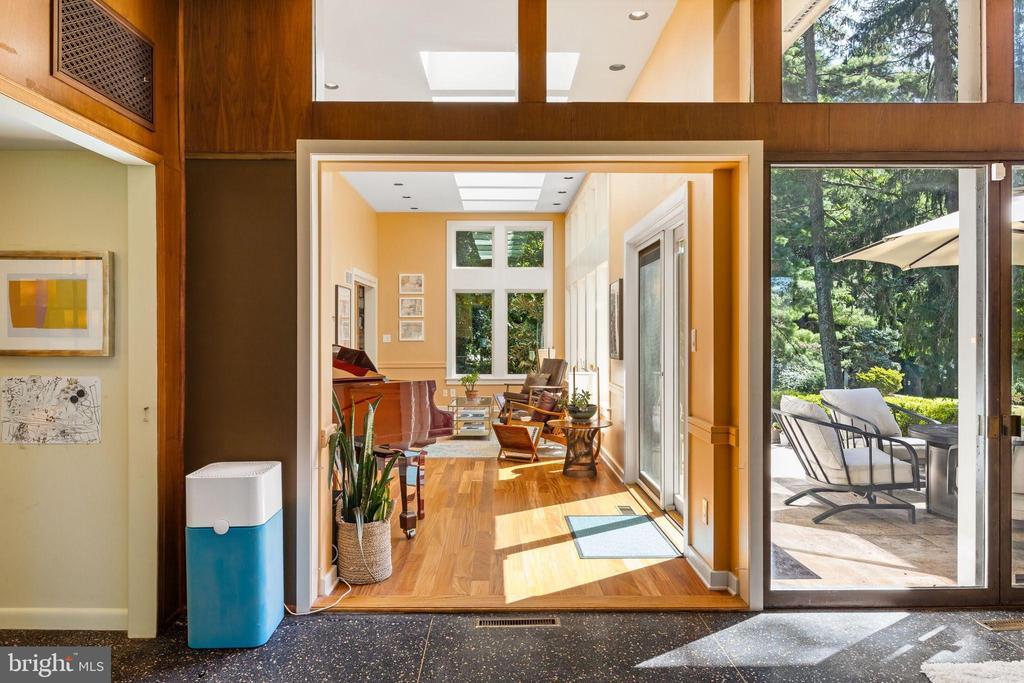 Welcome to Green Acres, a rare mid-century modern estate created in 1955 by architect Emil A. Schmidlin in collaboration with designer Ellis Leigh. Together, Schmidlin and Leigh also produced landmark works such as the Pace Setter House (1949) and the innovative Formica House, showcased at the 1964 New York World’s Fair. At Green Acres, their partnership carries forward that same spirit of experimentation and modern elegance. The home’s signature “X-marks-the-spot” layout is anchored by a dramatic circular foyer that becomes the organizing hub of the design. Positioned to capture natural light from sunrise to sunset, the house is seamlessly integrated into its setting. Nearly two private acres unfold around it, backing directly to the Curtis Arboretum. The property’s lower tier—part of the original Curtis Hall estate—features a water garden framed by specimen-class Japanese maples, creating a landscape as distinctive as the architecture itself. Here, Emil A. Schmidlin and Ellis Leigh’s original vision is preserved while modern enhancements bring the home into the 21st century. Original terrazzo and marble floors, warm walnut paneling, and expansive walls of glass embody the optimism of its era. Updates by the current owners bring the home fully into the 21st century: an ultra–high efficiency HVAC system, upgraded electrical service, roof improvements, new water heater, reverse-osmosis water treatment system, smart-home lighting and blinds, and a new tractor garage. The water garden has been enhanced with a modern waterfall and filtration system, and the family room’s original walnut paneling has been carefully restored. The result is a home where mid-century authenticity and modern comfort coexist. A dramatic stone fireplace wall with built-in wet bar anchors the entertaining spaces, while the sunroom addition, terraces, and chef’s kitchen with professional-grade appliances make daily living as inspiring as it is practical. Outdoors, the estate feels like a private arboretum. Winding paths lead through curated gardens, mature trees, perennials, and specimen plantings. The pond serves as a serene focal point, animated by water and light. It is both a gardener’s paradise and a sanctuary for quiet reflection. Located in historic Wyncote, Green Acres offers rare architectural pedigree with the convenience of urban access. The Jenkintown-Wyncote train station is within walking distance, while Jenkintown and Chestnut Hill provide dining, shops, and cultural destinations nearby. A true one-of-a-kind property, Green Acres is not just a home, but a living piece of architectural history—combining Ellis Leigh’s design vision, Emil Schmidlin’s architectural expertise, and the enduring beauty of mid-century modern design.