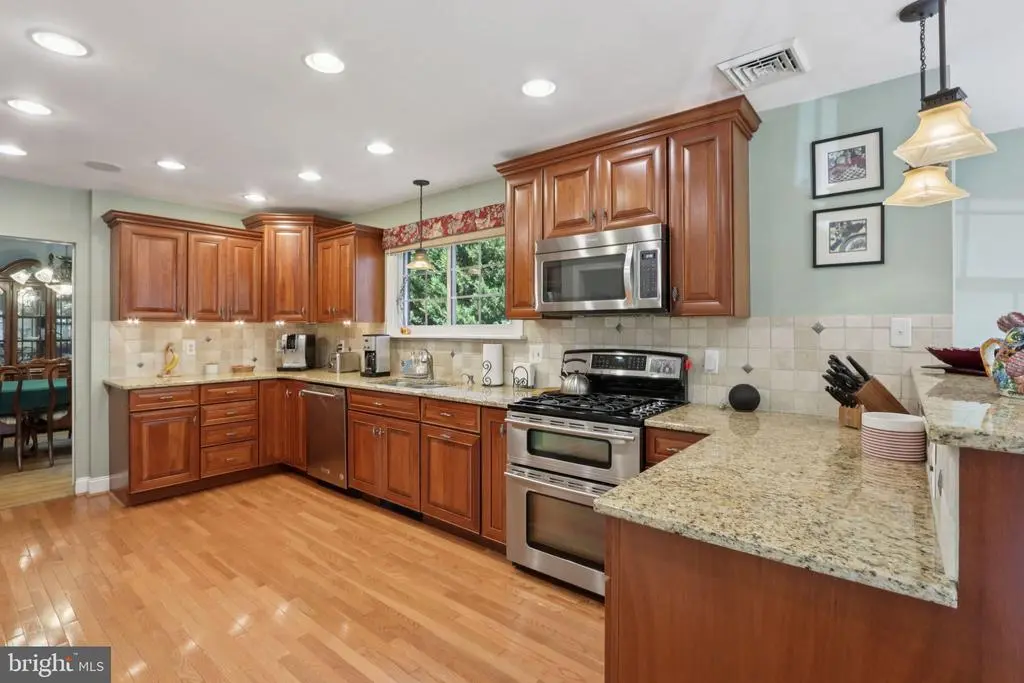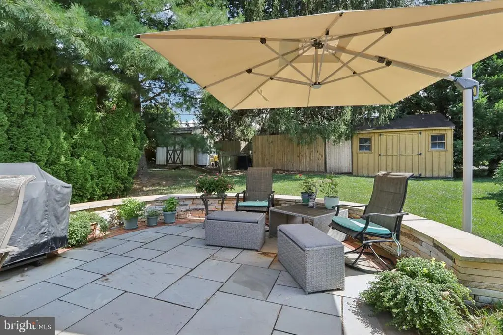 Welcome to 355 Brighton Road, a beautifully maintained colonial in the heart of Plymouth Meeting. This 4-bedroom, 2.5-bath residence offers over 2,200 square feet of comfortable living space, thoughtfully updated and ready for its next owner. A bluestone walkway leads to the inviting front porch and into the main level, where oak hardwood floors flow throughout. The kitchen features timeless wood cabinetry, granite countertops, and stainless steel appliances. The kitchen has plenty of storage and counter space and also includes a nice sized pantry closet. The formal living and dining rooms provide the perfect setting for everyday living and entertaining. A versatile room currently used as office space adds flexibility, and the highlight of the main level is the stunning family room addition. With arched wood ceilings and abundant natural light, this space is as warm as it is impressive. Just beyond, a spacious stone patio with hot tub offers the ideal retreat for outdoor gatherings and relaxation. Upstairs, the primary suite has been smartly reimagined to maximize both function and comfort. The ensuite bath features a glass enclosed tiled shower and a stylish vanity, while the custom walk-in closet provides exceptional storage. Three additional bedrooms, an updated hall bath with quartz vanity and walk-in tub, plus a versatile bonus room currently setup as a dressing room complete the second floor. The dry unfinished basement provides ample storage while the long oversize driveway that fits two cars side by side ensures plenty of parking. A side yard shed offers even more storage for equipment, outdoor furniture and bikes. With recent vinyl double-pane windows enhancing energy efficiency, this home is truly move-in ready. Located in one of Plymouth Meeting’s most desirable neighborhoods and just a short stroll to Plymouth Valley Park, 355 Brighton Road combines timeless charm with everyday convenience.