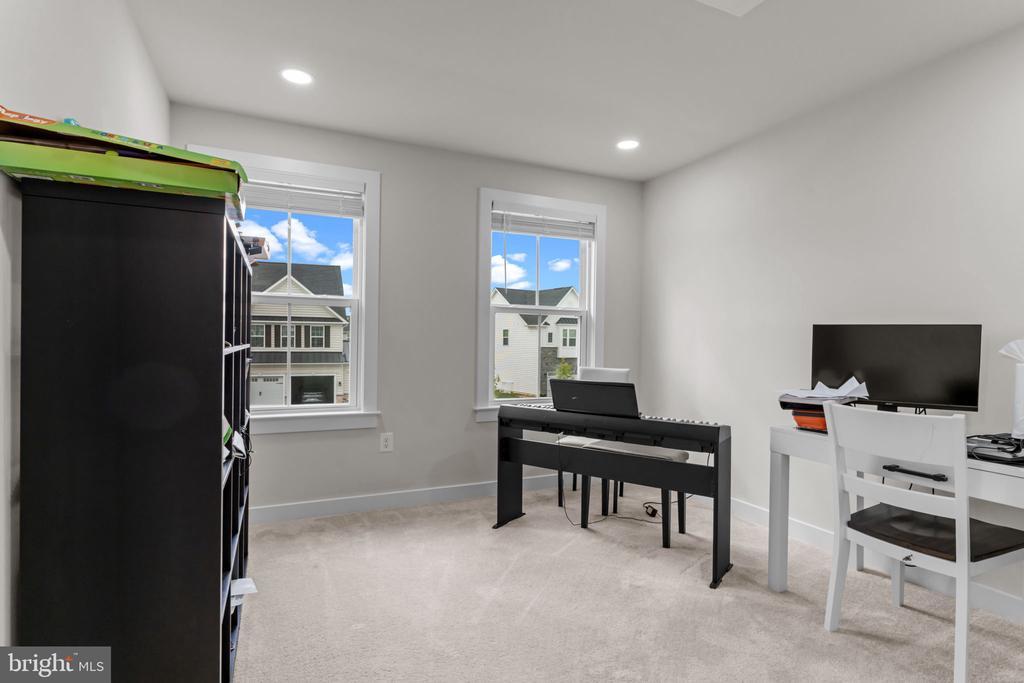 Welcome to this stunning 4-bedroom, 2.5-bath Powell model by NV Homes, nestled in the highly sought-after Penn Valley Estates within the award-winning North Penn School District. Built just two years ago, this home is filled with thoughtful upgrades and modern touches, making it truly move-in ready. Upon entering through the main door, you are welcomed by a bright foyer that opens to a versatile study and a flex room, offering the perfect spaces for work or relaxation. The open-concept family room flows beautifully into the dining area and gourmet kitchen, creating the perfect space for entertaining or everyday living. The kitchen offers a large island, plentiful cabinetry, and modern finishes, while the adjacent arrival center and two-car garage access add convenience for busy lifestyles. A powder room completes the main level. Upstairs, the luxurious owner’s suite boasts a spacious bedroom, generous sized his and her closets, and a luxurious owner’s bath, while three additional bedrooms, a full bath, and a conveniently located laundry room complete the upper level. The home is enhanced with recessed lighting throughout, ceiling fans in three bedrooms, and custom window treatments including Levlor solar roller shades and faux wood blinds. The fully finished basement (approx. 700 sq. ft.) is designed for entertainment with hardwood flooring, RGB recessed lighting, wiring for a 5-channel sound system, projector outlets, abundant storage, and a full bath that is framed and wired for completion (flooring, plumbing & finishing touches require). Step outside to a private backyard oasis with no homes behind, where a stunning 750–800 sq. ft. Cambridge paver patio with decorative columns and solar lighting provides the perfect setting for gatherings or peaceful evenings. Additional features include a finished garage with EV charging (45 amps) and easy access to Routes 309, 113, 63, and I-476, placing shopping, schools, and entertainment within minutes while offering a serene retreat from city life. Don't miss out on the opportunity to make this exquisite home yours. Schedule a showing today!