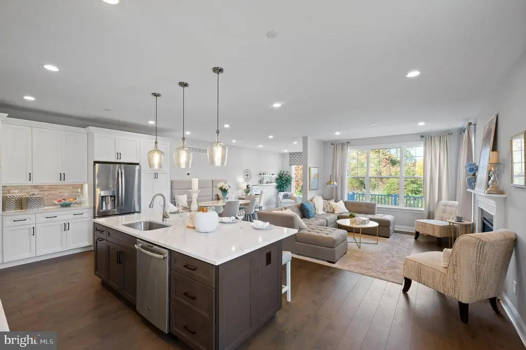 Built by Rouse Chamberlin Homes and located in the highly sought-after Enclave at Ridgewood community, our former Sutton Grand, Furnished Model home is now for Sale. This designer end-of-row townhouse offers a harmonious blend of luxury and comfort. With three spacious bedrooms and three and a half designer-chosen bathrooms, this residence is designed for both relaxation and entertaining. Step inside to discover an open floor plan that seamlessly connects the living, dining, and gourmet kitchen areas. The heart of the home features a redesigned New Kitchen with upgraded countertops, an enlarged island perfect for casual dining, and a pantry that caters to all your culinary needs. Stainless steel appliances, including a built-in microwave, wall oven, and gas five-burner cooktop, elevate your cooking experience. The inviting Great Room, adorned with a gas fireplace and elegant mantel, creates a cozy atmosphere for gatherings or quiet evenings at home. Natural light floods the space through the many large, double-pane, energy-efficient windows, enhancing the warmth of the engineered hardwood flooring. The primary suite is a true retreat, boasting a Tray-Ceiling, luxurious walk-in closet, and a spa-like bathroom complete with a walk-in shower, ensuring a serene escape at the end of the day. The fully finished walkout basement offers additional living space, perfect for a home theater, gym, or play area, while the upper-floor laundry adds convenience to your daily routine. Thoughtful details such as recessed lighting and a sprinkler system enhance the home's functionality and aesthetic appeal. Outside, the property is beautifully complemented by exterior lighting, sidewalks, and street lights, creating a welcoming ambiance. The deck provides an ideal setting for outdoor entertaining or simply enjoying the tranquil views of the surrounding trees. The corner homesite offers added privacy, making it a peaceful sanctuary. With an attached two-car garage and driveway parking, convenience is at your fingertips. The community amenities, including jogging paths, playground and sidewalks that foster an active and engaging lifestyle. This home is not just a residence; it's a lifestyle choice that embodies luxury, comfort, and community. Experience the perfect blend of modern living and natural beauty in this exceptional property.