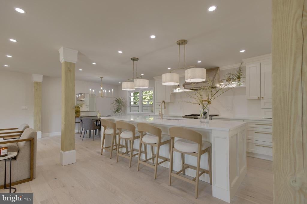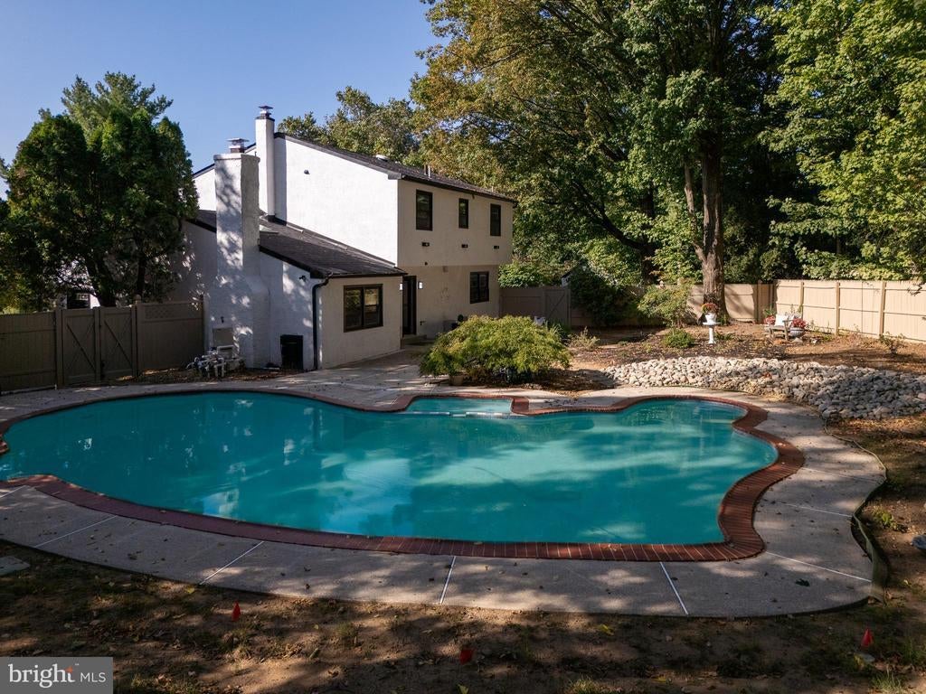 Welcome home... this thoughtfully designed Transitional home in Wynnewood is situated at the top of the cul-de-sac which offers great views from this vantage point. The property has been completely renovated with 4 nicely sized bedrooms, 3 full baths and a half bath on the first floor. The open floor plan is fabulous and is full of natural light and pleasantries with a large living room and dining room combo and open kitchen concept with a 9' foot island that seats 4 comfortably. The kitchen flows nicely and gives you plenty of space to prep, cook and gather. For added space, a banquette seating area has been added to give you the additional seats for more informal eating. And for entertaining, an amazing den/study/family room was designed specifically for you to relax, read and entertain guests. The ceilings have been raised and 2 skylights installed to give you that bright and airy feel. Also, there is a charming brick wood burning fireplace and a kitchenette area with a wet bar and wine cooler. The second floor is spacious and flows nicely with the primary bedroom in the rear overlooking the patio and garden. The hall bath has been remodeled offering a tub/shower combo and a 42" vanity. The primary bedroom and bath have high ceilings with the tile extending upwards to the ceiling, and a 48" vanity. Each bedroom offers plenty of closet space and natural light. The lower level features another family room with a full bath (tub/shower combo), storage and a laundry area. Other amazing features of the home include white oak floors throughout, modern lighting, a tankless hot water heater, a new roof, an inground pool and an EV Charger for added convenience. Located in an Award-Winning School District and being just minutes away from Whole Foods, Giant, a shopping center, etc., this home is bound to meet all of your modern day needs and more! Come and make this remarkable home - YOURS!