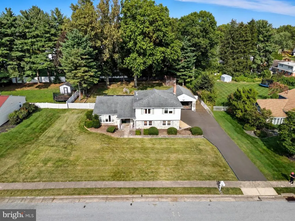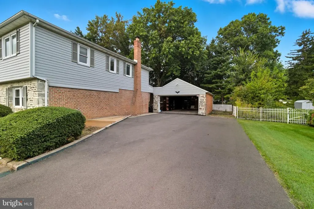 Welcome home to this well maintained split-level home where a double door entry welcomes you into a bright and welcoming foyer. To your left, the living and dining area unfolds with cathedral ceilings, original oak hardwood floors, and an oversized bow window that fills the space with warm natural light. Next, head into the kitchen that is dressed with granite countertops, a stainless steel under-mount sink, and ceramic tile backsplash. From here, step into the charming three-season sunroom, where stone flooring and picturesque backyard views provide the perfect setting for morning coffee or an evening unwind. Downstairs, the great room is a true retreat, anchored by a classic wood-burning fireplace and a large bow window that overlooks the covered back patio. Step through the door and find a shaded outdoor space complete with ceiling fans—ideal for enjoying the fresh air on warm summer nights. Adjacent to the great room, a bar and lounge area offer a welcoming space to host friends and family. This level also includes a convenient powder room, laundry room, and even offers the potential to be transformed into a private in-law suite. Venture down one more level to discover the fully finished basement, featuring plush carpeting, a spacious full bathroom with a stall shower, and two additional rooms—perfect for a home office, fitness space, or guest quarters. A walk-up Bilco door provides easy outdoor access. Upstairs, the primary suite offers a private escape with two closets, including a walk-in, and an ensuite bathroom. Three additional bedrooms, two with oak hardwood flooring, share a full bath with a tub-shower combination. Outside, the expansive fenced-in backyard offers endless possibilities for play, gardening, or simply enjoying the fresh air. The oversized detached two-car garage provides ample storage and workspace. With major updates including a new kitchen (2025), new driveway (2020), central air (2020), and upgraded electric service (2020), this home is move-in ready. Nestled near scenic parks, the historic Cairnwood Estate, and Philmont Country Club, this location combines tranquility with convenience. With easy access to the PA Turnpike, commuting is effortless. Don’t miss your chance to make this exceptional home yours—schedule a private tour today!