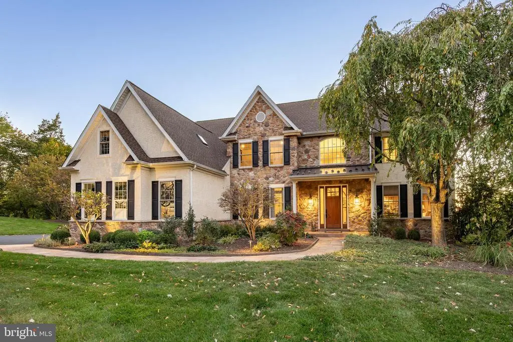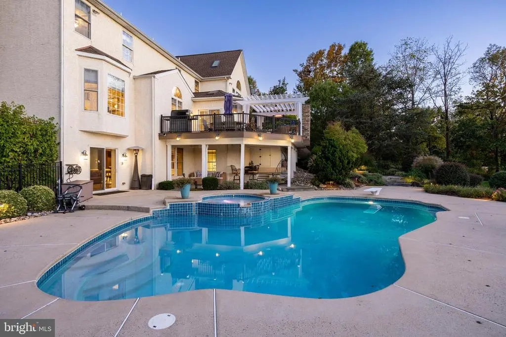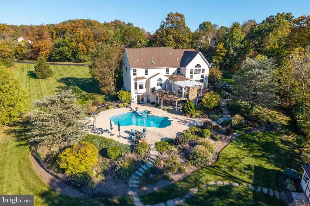 Welcome to 540 Landis Road-the home you have been waiting for. Nestled on a private, tree-lined 2.19-acre lot with a long driveway, this 5,830 sq. ft. estate seamlessly blends timeless craftsmanship with modern luxury. Offering exceptional privacy and stunning views, the residence showcases elegant design, premier upgrades, and meticulous care by its original owners—now awaiting its next chapter. The first floor begins with a dramatic two-story foyer and a thoughtfully designed layout. At its center, a gourmet kitchen features a Viking Professional 7-Series built-in double French door oven, new stainless-steel microwave (2025), Bosch stainless steel dishwasher (2024), Cambria quartz countertops, new deluxe refrigerator (2024), custom Decora cabinetry, designer lighting, and Lutron app-controlled illumination. The kitchen opens to a light-filled eating area with skylights and deck access, as well as a spectacular two-story family room with fireplace and custom Cambria quartz bar—complete with Hunter Douglas power shades. Formal living and dining rooms, both with custom moldings and coffered ceilings, provide refined spaces for gatherings, while a private library offers flexibility for a home office. Wide-plank natural hickory hardwood flooring flows throughout much of the main level, uniting each space with warmth and sophistication. The upper level boasts an oversized primary suite with sitting area, dressing area, and expansive walk-in closets. Its spa-inspired ensuite bathroom offers heated flooring, a freestanding Picasso Maestro thermal air tub with heated backrest, digital shower controls, custom tiled shower and Hunter Douglas Vignette power Roman shades. Three additional bedrooms and two full bathrooms complete this level. The fully finished, walkout basement is an entertainer’s dream, offering a custom-built bar, theater room, exercise room, art area, full tiled bathroom, and a generous storage area that also includes GE Profile double ovens (for large gatherings or parties), countertop space, and cabinetry. Abundant storage and thoughtful design make this level as functional as it is impressive. The resort-style backyard is the crown jewel of this estate. A Trex deck with LED recessed uplighting, Trex Transcend railing with LED lighted posts, Montego stone fireplace with remote and two additional electric heaters mounted, and a spacious, vinyl pergola creates an exceptional outdoor living space, while Trex Rain Escape waterproofing makes the stone patio below equally inviting. The deck overlooks the in-ground pool with attached hot tub, fully resurfaced in 2021 with new tile and a waterfall spillway wall, upgraded LED lighting (2025) in pool and hot tub, all enclosed by an ultra-aluminum fence with three single gates and one double gate. Surrounding flagstone walkways, stone patios, lush perennial beds, and extensive hardscaping enhance the professionally landscaped, fully irrigated, landscaped grounds—an easy to maintain outdoor oasis designed for both relaxation and entertainment. Complementing these features is a curated list of upgrades and systems that elevate comfort and convenience: an Ackerman wired security system, Sonos whole-house audio extending from the pool and patio to the basement, kitchen, breakfast room, library, theater and primary suite bath, Lutron smart lighting, Focus landscape lighting, a Rainscape Wi-Fi 9-zone irrigation system, whole-house water filtration with chemical feed, a chandelier lift system, new roof (2025), with a 50 year transferable warranty, and new Velux skylights (2025), driveway seal coating (2024), a Fujitsu 4-zone ductless heat pump system (2018), and newly replaced first- and second-floor A/C & Carrier High Efficiency heat exchangers (2025). Additional highlights include an oversized, side-entry 3-car garage with oversized doors and a new shed (2025). Please note Ring recording /monitoring devices on premises.