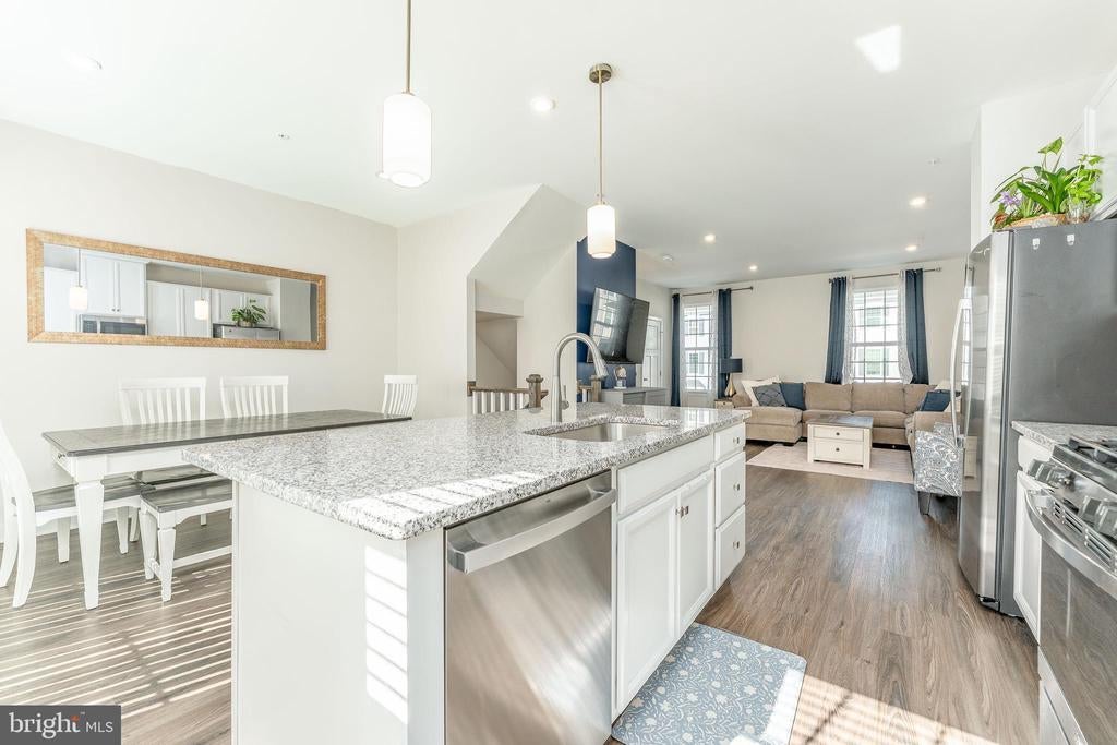 Welcome to 16 Hunters Drive, a beautifully maintained 3-bedroom, 2.5-bath townhouse in the highly desirable Foxwood Ridge community of Gilbertsville. A driveway and attached garage lead you to the welcoming entryway. Inside, the foyer features luxury vinyl plank flooring and access to the staircase leading up to the open-concept main level. The living room is spacious and bright, with luxury vinyl plank flooring that continues seamlessly into the kitchen. The kitchen is the centerpiece of the home, offering granite countertops, a large island with seating and pendant lighting, stainless steel appliances, and a pantry for added storage. Adjacent to the kitchen, the dining area features matching flooring and a sliding glass door that opens to the rear deck—a perfect spot for outdoor dining or relaxation. A powder room conveniently completes the main level. Upstairs, the primary bedroom features carpet flooring, a tray ceiling, ceiling fan, and a walk-in closet. The en-suite bath includes tile flooring and a walk-in shower with dual shower heads. Down the hall, a second full bathroom offers a tub/shower combination and tile floors, while two additional bedrooms—each with carpet flooring—provide comfortable space for guests, family, or a home office. A laundry closet on this level adds convenience. The lower level expands the living space with a carpeted family room, sliding doors to the backyard, and a dry bar complete with built-in cabinets, wine rack, and beverage fridge. A built-in queen sized Murphy bed makes this level perfect for guests or a flexible living arrangement. Located close to the Schuylkill River Trail, Boyertown Park, Philadelphia Premium Outlets, and Upland Square Town Center for shopping and dining, this move-in-ready home combines modern comfort, thoughtful design, and an ideal location. Don’t miss your chance to make 16 Hunters Drive your new home!