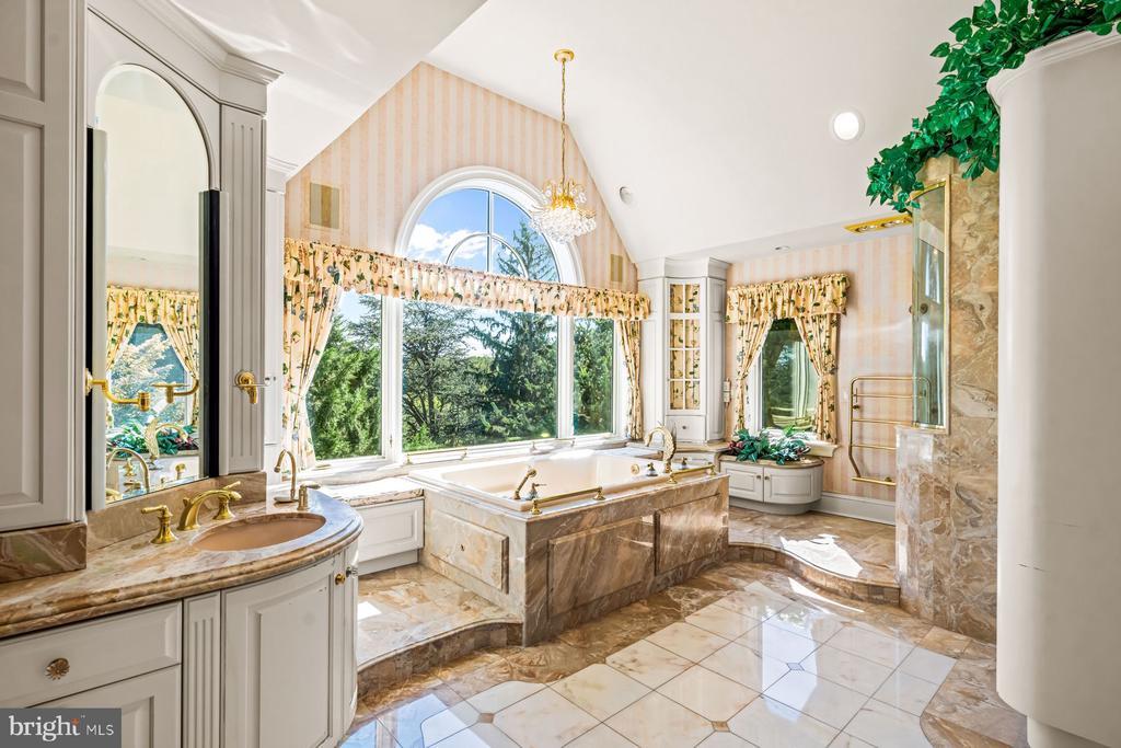 Additional Stairway, Attic, Bar, Bathroom - Jetted Tub, Soaking Tub, Tub Shower, Bathroom - Walk-In Shower, Built-Ins, Cedar Closet(s), Carpet, Chair Railing, Crown Molding, Curved Staircase, Elevator, Exposed Beams, Formal/Separate Dining Room, Pantry, Recessed Lighting, Upgraded Countertops, Wainscotting, Walk-in Closet(s), Wet Bar/Bar, Shades/Blinds, Wine Storage, Wood Floors, Wpool Jets