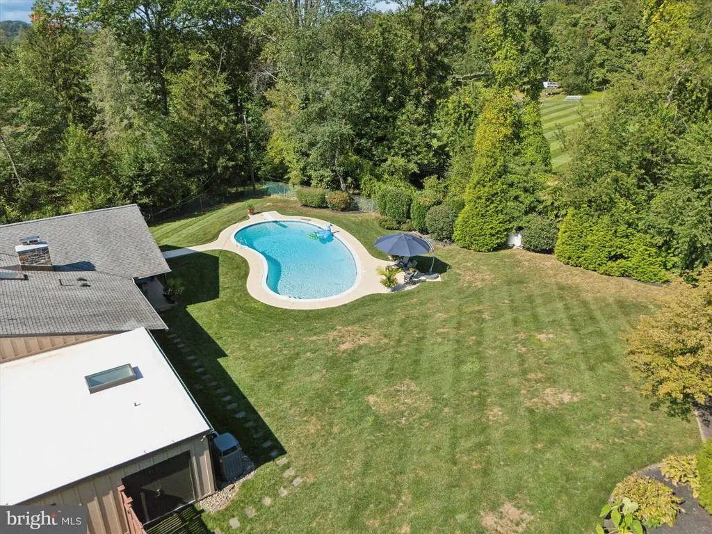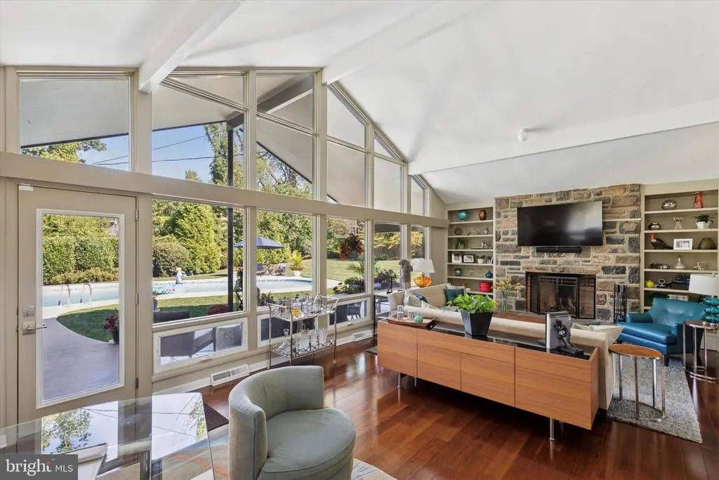 Welcome to 1641 Chattin Road, a very well-appointed Mid-Century Modern Ranch property nestled on a private cul-de-sac in the highly desirable Laverock. This impeccably renovated Mid-Century Modern Ranch offers a rare blend of timeless design and luxurious upgrades. From the moment you arrive, the beautifully landscaped grounds and classic curb appeal set the tone for the elegance within. Step into a spacious formal foyer showcasing gorgeous Brazilian hardwood floors, which flow seamlessly throughout most of the main level. To the left of the foyer is the beautiful, spacious gourmet eat-in kitchen, a chef’s delight! This kitchen boasts sleek custom cabinetry with overhead and under-cabinet lighting, stainless steel appliances, granite countertops, a glass tile backsplash, an induction cooktop, a combination wall oven and convection oven, large-format ceramic tile flooring, and stylish decorative lighting. Adjacent to the kitchen, the formal dining room opens into a breathtaking cathedral-ceiling living room with exposed wood beams and a dramatic 21-pane glass wall, flooding the space with natural light and offering stunning views of the outdoors, with the gorgeous kidney-shaped swimming pool taking center stage. A stone wood-burning fireplace, flanked by illuminated built-in bookshelves, adds warmth and character. The main level includes two well-appointed bedrooms with custom Hunter Douglas Blinds and a fully remodeled hall bathroom featuring: soaking tub, a double sink vanity, tile shower with well-appointed fixtures, elegant lighting, and a skylight. In (2021), a 700 square-foot addition was added, allowing for an expanded primary suite complete with a stunning en-suite bathroom boasting luxurious fixtures, faucets, accessories, and lighting creating a spa-like experience. There are three large walk-in closets equipped with California closet systems and lighting. From the en-suite bathroom, you have direct access to the pool and backyard. The addition also incorporated a laundry room with a sink, an office, access to the two-car garage, as well as space for exterior pool equipment and storage. Making your way to the finished daylight basement, you will be greeted by a 21x14 family room that features a full retro wet bar with seating and ample cabinetry. This level also features a 22x10 bedroom with a spacious closet, a fully remodeled bathroom, an additional laundry room with added storage, and a mechanical room. The backyard is a perfect oasis for all your gatherings and enjoyment. The spacious covered patio is an ideal space for outdoor activities. In 2022, the 45,000-gallon Sylvan pool underwent a full renovation, featuring LED lighting, water features, an in-wall pool cleaner, a heating system, and a saltwater conversion. A newly erected private fence with gates and updated landscaping. Other noteworthy recent upgrades: (2021) Generac whole-house generator, whole-house custom Marvin windows installed, all exterior doors replaced in (2021), Tyvek house wrap/foam insulation, clad with Hardie Plank board and batten siding, including all new soffits, gutters, and downspouts, new custom garage doors and opener (2024). The location is ideally suited for convenient access to shops and restaurants of Chestnut Hill, Center City Philadelphia, and Rtes. 309 and PA Turnpike, the charming community of Glenside and the Keswick Theater, the Philadelphia Cricket Club, La Salle College High School, Germantown Academy, Springside Chestnut Hill Academy, Ancillae-Assumpt Academy and nearby Septa stations. Come visit and fall in love!!