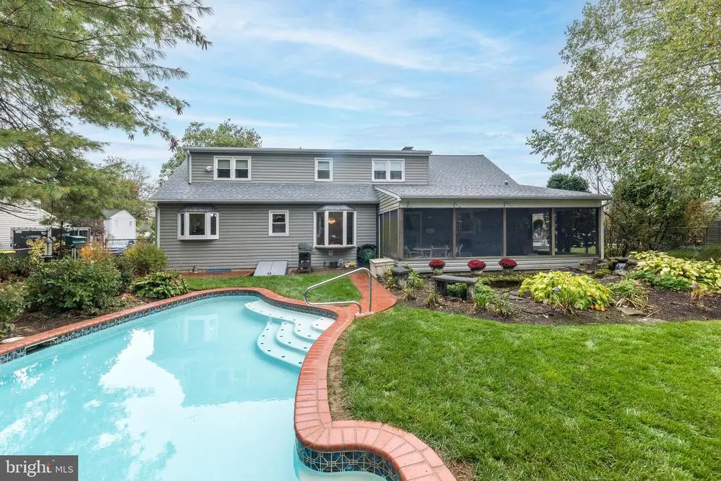 Welcome Home! This wonderful, move-in ready Cape Cod rests on a peaceful cul-de-sac and offers 4 bedrooms, 2.5 baths, and 2,070 square feet of above-grade living space. The lush, fenced backyard is a gardener’s dream featuring extensive perennials, a soothing pond with continuous running water, and a stunning in-ground saltwater pool. Nestled in a highly desirable Hatfield Borough neighborhood with access to the award-winning North Penn School District, this home combines comfort, charm, and convenience. From the inviting covered front patio to the manicured landscaping, this home radiates curb appeal. Step inside to a welcoming living room with a propane brick fireplace with mantel flows seamlessly into a formal dining room adorned with chair rail molding and a bay window. The adjoining eat-in kitchen features quartz countertops, abundant cabinetry, a tile backsplash, built-in microwave with exterior venting, dishwasher, coffee bar nook, pantry with spice rack, ceiling fan with light, and a hanging pot rack is perfect for any home chef. The main level also features a laundry room with shelving and a convenient half bath. From the kitchen, step out to the roof-covered, screened-in patio complete with a ceiling fan light and built-in wooden bench seating around the perimeter. This versatile space can easily be converted into an all-season sunroom, ideal for entertaining or enjoying peaceful evenings overlooking the pool, pond, and garden oasis. Continuing on the main floor, you’ll find a coat closet and two spacious bedrooms with ceiling fans, ample closet space, and bay windows. The full primary bathroom offers a jetted tub and shower combination, a stylish sink bowl with quartz countertop, with heat underneath the vanity and a linen closet. Upstairs, two additional large bedrooms each include ceiling fans and generous closet space. The upper level also features two large hallway closets, a bonus flex room with TV hookup is perfect for a home gym, art studio, hobby area, office or storage space. A full bathroom with tub/shower combination and linen closet complete the second level. The unfinished basement is waiting to be finished and provides excellent storage, a water softener system, utility sink, wood-burning stove and Bilco door egress. The oversized one-car garage offers extra shelving and storage options. Recent improvements include a new roof (February 2025) with transferable warranty, new central air, front and rear irrigation system, new saltwater pool cell, vinyl tilt-down windows, and numerous smart storage nooks. Perfectly located near the heart of Hatfield, this home is close to shops, restaurants, parks, and recreation areas offering the best of small-town living with modern amenities. Don’t wait, schedule your showing today! This home won’t last long!