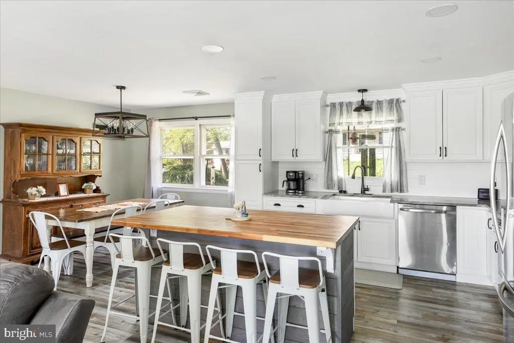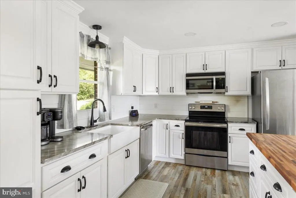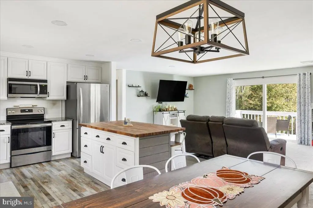 Welcome home to 808 Mountainview Ave in Schwenksville! Located in the highly rated Perkiomen Valley School District, this beautifully updated home is truly move-in ready. Step inside to find a fully remodeled kitchen featuring soft-close shaker cabinets, granite countertops, a custom oversized butcher block island with seating and outlets, a charming farmhouse sink, Lifeproof plank flooring, and all-new LED lighting throughout. The open layout and natural light make the main living space perfect for both everyday living and entertaining. Enjoy peace of mind with a brand-new high-efficiency HVAC system (installed April 2024) with WiFi thermostat, plus updated electric baseboards for supplemental heat. The entire home has been refreshed with new flooring, paint, and trim, updated bathrooms, and new ceiling fans in all bedrooms. The finished lower level offers extra living space with new wall paneling, trim, and flooring—ideal for a family room, play area, or home office. Outside, relax on the freshly painted and resealed deck (Summer 2025) overlooking the spacious yard, complete with outdoor power in the play area. Additional updates include gutter guards, new sliding doors, and a replaced kitchen window. This home offers the perfect blend of modern comfort, thoughtful updates, and neighborhood charm—schedule your showing today and fall in love with 808 Mountainview Ave!