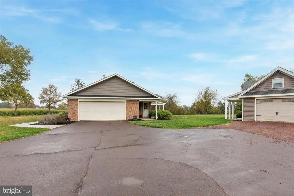 Easy, breezy one-level living—move right in! Looking for a maintenance-free home where you can just unpack and start living? This beautifully updated 3-bedroom, 1.5-bath rancher in Lower Salford Township offers the perfect blend of comfort, convenience, and flexibility. Everything is done—fresh, neutral décor, a new roof and exterior in 2025, updated windows, a new septic system in 2015, and new central air system in 2016. You won’t even need to paint! Enjoy true one-level living with thoughtful extras: spacious living room with brick fireplace and sliding doors to a covered porch—perfect for watching the sunset or enjoying your morning coffee. Light-filled dining room with bay window, hardwood floors, crown molding, and charming built-ins to showcase your keepsakes. Updated spa-like main bath with double sinks and easy-access shower—ideal for retirement comfort. Half bath near the garage—convenient “go before you go” stop. Ceiling fans in bedrooms when you want a breeze without central air. For hobbyists or tinkerers, there’s more to love: attached 2-car garage plus a detached garage/workshop with high ceilings and loft storage—even your monster truck will fit! Full basement with brick fireplace and bilco doors—ready to finish for extra living or recreation space. Shed for tools, plus nearly 2 acres of peaceful land surrounded by preserved farmland—meaning you’ll keep that serene view for years to come. Additional parcel (Tax ID: 50-00-00245-04-6, 3,963 sq. ft.) included in the sale. Prime location: enjoy the tranquility of country living with the convenience of nearby attractions—just minutes to Harleysville shops and dining, Skippack Village, Lederach Golf Club, and major commuter routes to Lansdale, Collegeville, and King of Prussia. Whether you’re downsizing, retiring, or simply ready for an easy-care home with room for visiting family and hobbies, this one checks every box.