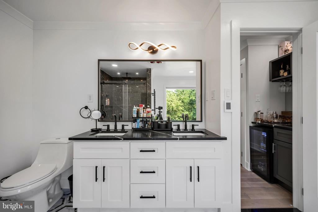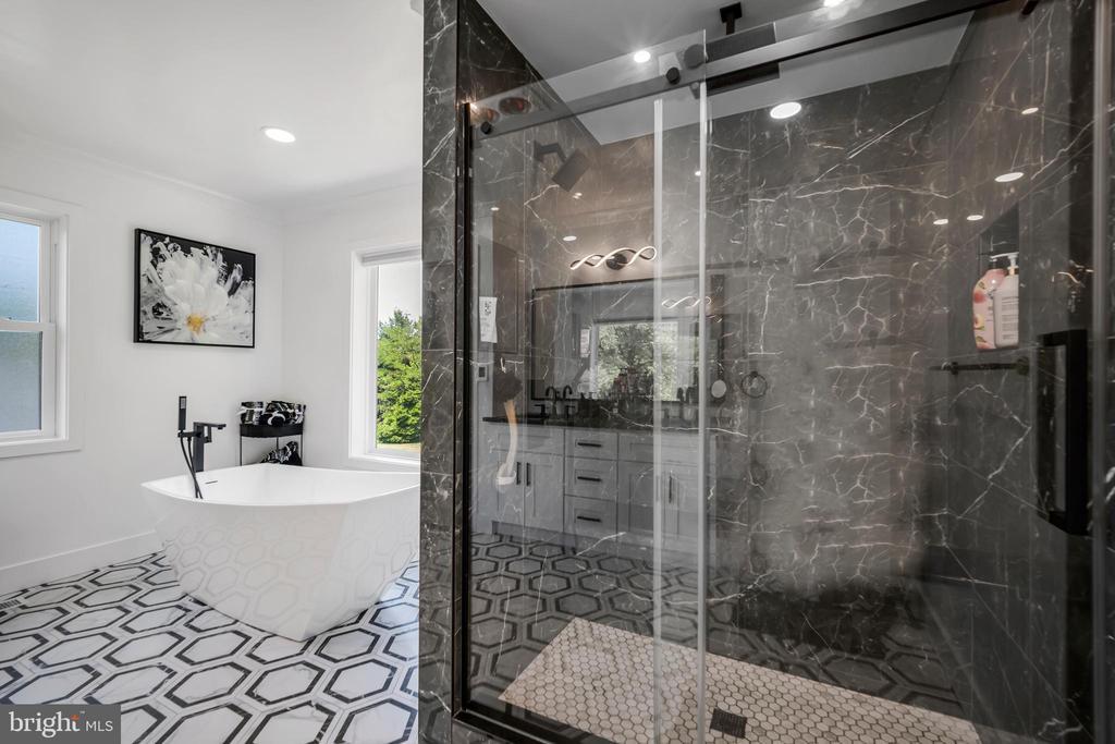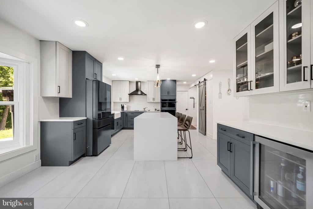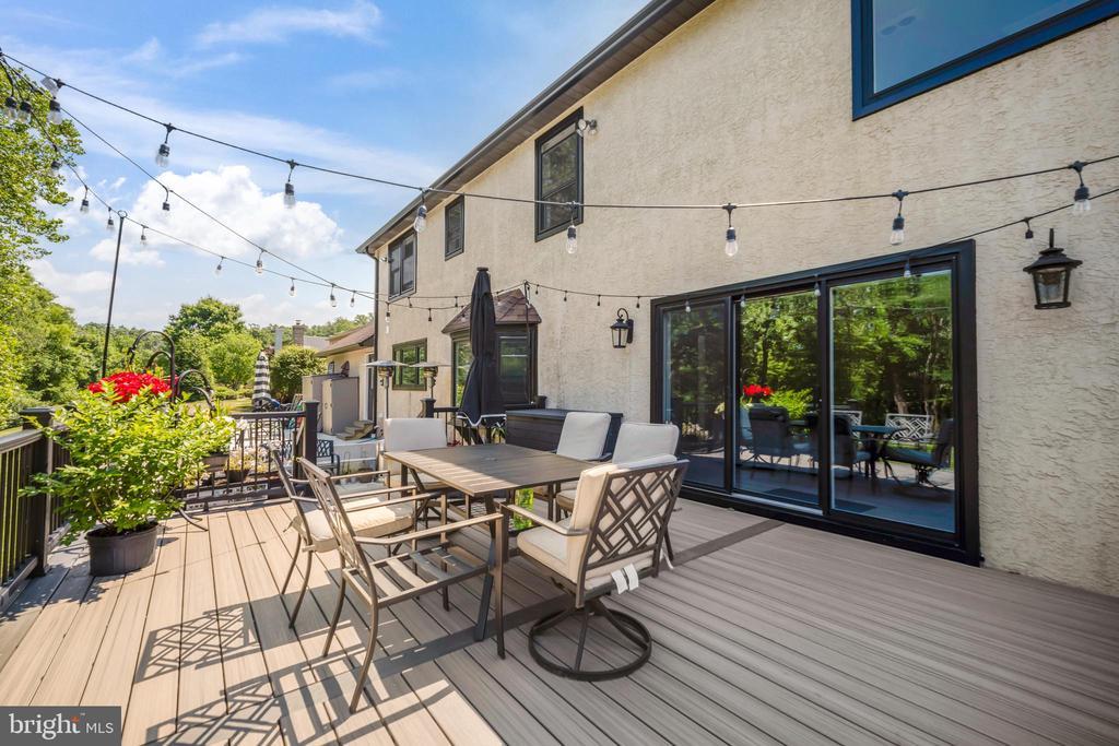 Experience timeless sophistication in this immaculate 5-bedroom, 3.5-bath brick colonial, ideally situated at 1404 Cinnamon Circle on a peaceful cul-de-sac in the heart of Upper Dublin Township. Framed by mature trees and enhanced by meticulous new landscaping, this residence seamlessly blends classic architecture with modern farmhouse charm. Step inside to discover 3,870 square feet of beautifully reimagined living space, where every detail has been thoughtfully curated. The grand foyer welcomes you with 5-inch solid oak hardwood floors, intricate millwork, and modern oval metal balusters, setting the tone for the craftsmanship found throughout. To the right, the formal dining room exudes understated elegance with a contemporary chandelier, floating built-ins topped with live-edge wood, and matching live-edge wine displays—a perfect setting for intimate dinners and festive gatherings. The chef’s kitchen and breakfast area are a true centerpiece of the home, masterfully designed for both functionality and style. Highlights include custom two-tone 42-inch cabinetry, a pantry with a barn-door slider, abundant built-ins, and a generous central island crowned with white quartz countertops and a dramatic waterfall edge. Premium Samsung appliances, including a sleek canopy hood, complete this impressive culinary space. Adjacent to the kitchen, a mudroom with a custom-built boot bench leads to a fully appointed laundry room, finished with elegant tilework. The family room offers a warm and inviting retreat, anchored by a wood-burning fireplace and enriched with shiplap walls, a coffered ceiling, and contrasting navy built-in cabinetry. A sliding door opens to a sprawling Trex deck, ideal for entertaining, with breathtaking views of the expansive backyard. The main level also features a private guest suite with a beautifully appointed full bath—perfect for visitors or multigenerational living. Ascend the staircase, illuminated by a dramatic skylight, to the second floor, where you’ll find a hall bath with heated floors, a double vanity with stone countertops, and a tub-shower combination. Each bedroom is generously proportioned and filled with natural light. The primary suite is a sanctuary unto itself, featuring a private study/den, multiple closets—including a coat closet, shoe closet, and walk-in—a tray ceiling with inlaid LED lighting, and an electric fireplace. A wet bar with a beverage cooler adds a touch of luxury. The spa-inspired primary bathroom is simply exquisite, showcasing imported tile, heated floors, a freestanding soaking tub, a double stone vanity, and a glass-enclosed shower with a bench. The lower level offers a versatile open space with a walk-up to the backyard, ready to be transformed into an entertainment hub, home gym, or personal retreat. Additional highlights include a newer HVAC system, a brand-new hot water heater, and an enviable location just minutes from premier shopping and dining destinations such as The Promenade, Willow Grove Park Mall, Plymouth Meeting Mall, and King of Prussia Mall. This extraordinary residence is a rare offering, combining timeless elegance, thoughtful design, and modern luxury. Don’t miss your chance to call this exceptional property home.