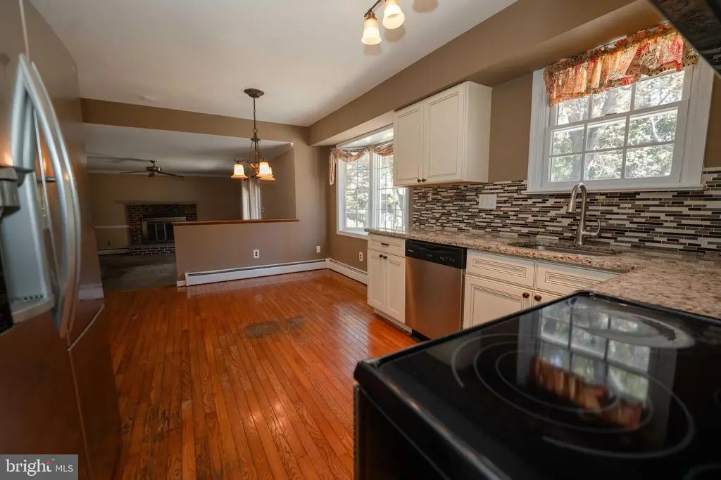 Lovely 3BDR 1.5 Bath Colonial with a One Car Garage on .56 Acre Lot in Hatfield Twp. in North Penn School District with a beautiful serene backyard with Absolutely Gorgeous Majestic Mature Trees and a Shed. Public Water & Sewer. As you enter into the foyer with a Half Bath and Coat Closet with hardwood flooring that carries through to the Kitchen. The Eat In Kitchen has been nicely updated with newer Kitchen Cabinets, Granite Countertops with a Built-In GE Microwave, Kenmore Electric SS Oven, Frigidaire Dishwasher and LG Refrigerator with a Water Line. The Kitchen Breakfast Room has a Bow Window where you can relax while eating and enjoy the beautiful backyard. Over the years, a newer roof was installed and the exterior siding was replaced with vinyl siding. Additionally, the windows and the sliding glass door to the deck were replaced. Formal Dining Room and Living Room flow together accented with a Chair and Crown Molding. Main Floor Powder Room. Nicely appointed family room with a Wood Burning Fireplace. Three Bedrooms on the upper level are carpeted and share a Hall Bath. For additional storage, there is a Full Unfinished Basement with a Washer, Dryer, Laundry Tub and Newer Sump Pump & Oil Tank. Home is being Sold As-Is, no credits or repairs. The home is in need of cosmetic updates. Once completed, you will have a fabulous home and backyard in a Great Location, Neighborhood & School District. Room Measurements are Estimated and Not Guaranteed and should be verified and confirmed by an independent professional.