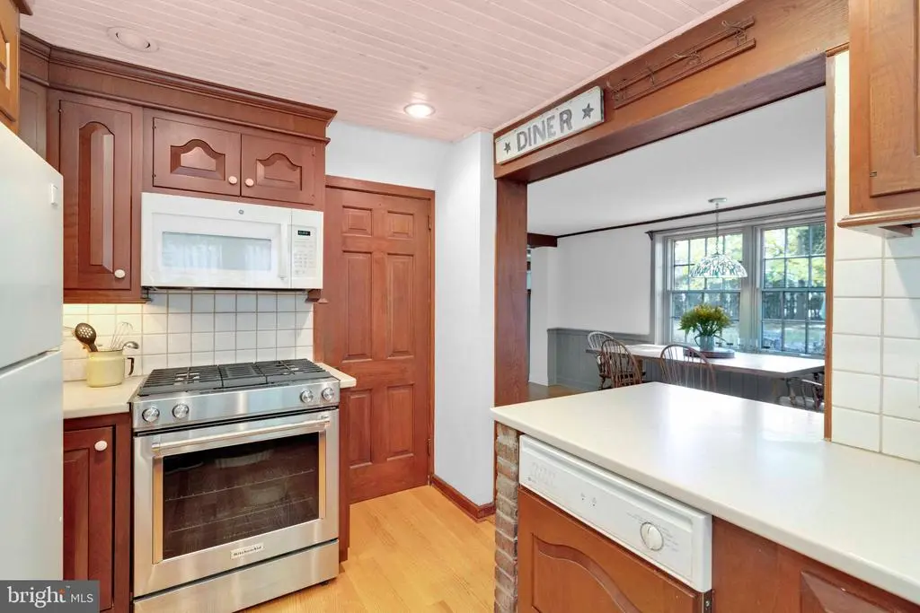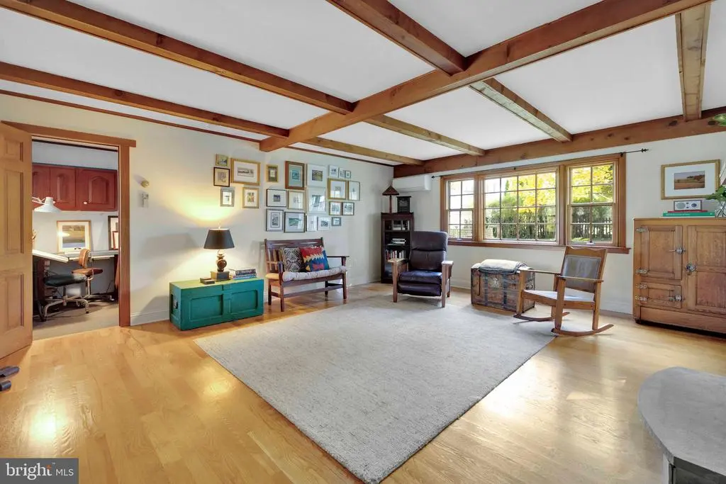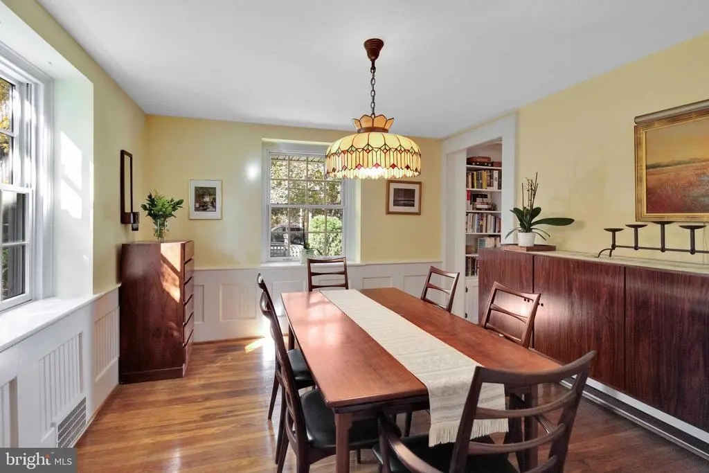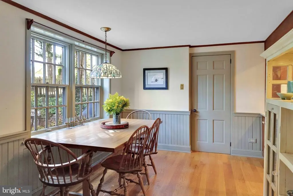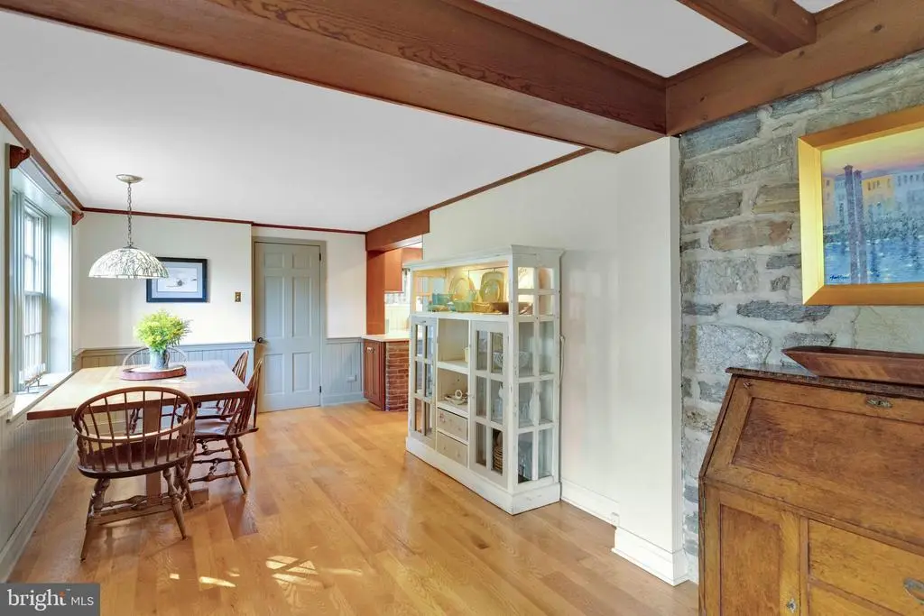 Attic/House Fan, Bathroom - Tub Shower, Built-Ins, Exposed Beams, Formal/Separate Dining Room, Recessed Lighting, Wainscotting, Wood Floors