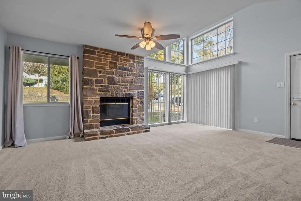 This inviting first-floor condo, located in the Hatboro-Horsham School District, offers comfortable living in a desirable community. Featuring 2 bedrooms and 1 full bathroom, the home boasts neutral carpeting throughout and a bright, open layout. The spacious two-story living room is highlighted by a wood-burning fireplace, a dramatic wall of windows, and sliding glass doors leading to a private patio—perfect for relaxing or entertaining. The dining area includes a convenient pass-through to the kitchen, creating an easy flow for everyday living. The updated full bathroom features a walk-in shower, while the primary bedroom offers a generous walk-in closet for ample storage. Enjoy the convenience of nearby walking trails, restaurants, shopping, and major commuter routes—everything you need is just minutes away. Experience easy, low-maintenance living in the popular Saw Mill Valley community!
