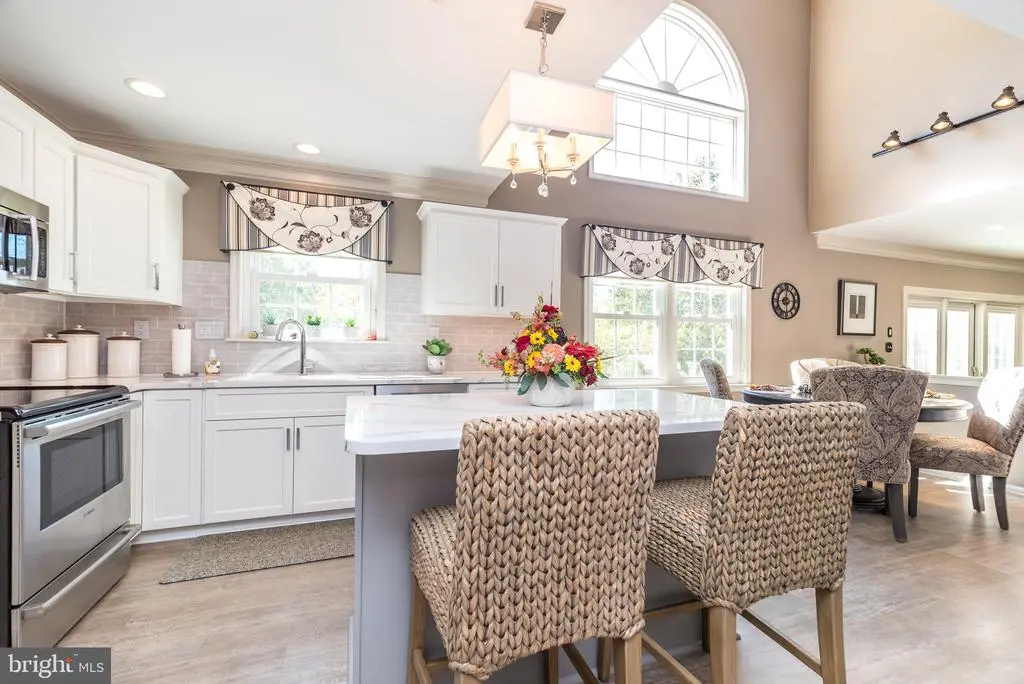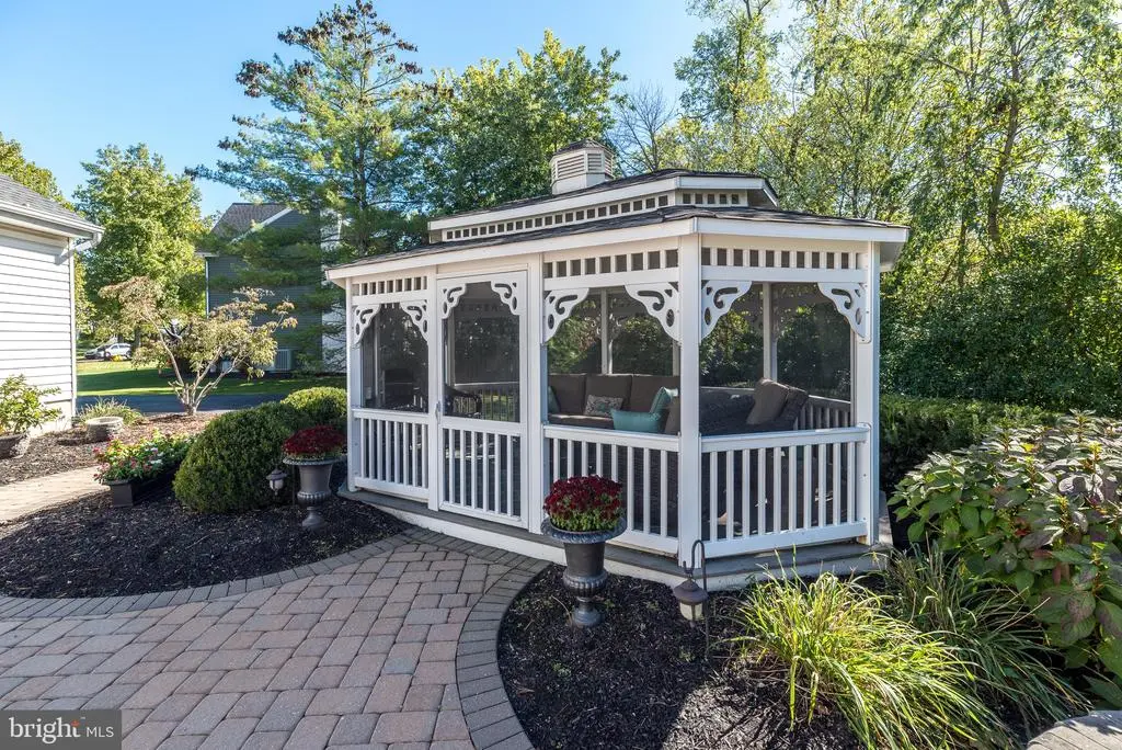 WOW! Beautiful two story colonial situated on .46 acre lot in Montgomery Twp. Many upgrades and improvements were made by the current owner that make this a true turn key property. Proceed to the home from the front curved paver walkway and terraced paver steps onto the covered front porch. Enter into thet two and one half story foyer with open turned staircase featuring custom balusters and newell posts. Formal living room with triple Pella windows and custom window treatments, wood flooring, and custom crown moulding. Formal dining room with bow window and custom window treatments, wood flooring, custom crown moulding and wainscoting, and new upgraded chandelier. The remodeled eat in kitchen showcases Quartz countertops, coordinating subway tile backsplash, Cortec LVT flooring, center island with seating and storage, Stainless Steel Bosch range, microwave,,dishwasher, and disposal. There is recessed lighting in the main kitchen area as well as track lighting in eat in area, under cabinet lighting, and a pendant over the island. There is a pantry for additional storage. Two story eat in area with oversized Paladium window for lots of natural light. The kitchen is open to a family room with wood burning stone surround fireplace with hearth and mantle, wood flooring, ceiling fan, and an upgraded Pella sliding door with side panels that leads to the expansive outdoor living space. A powder room and coat closet complete the first floor. The second floor offers an owners bedroom with wood flooring, vaulted ceiling, ceiling fan, triple Pella windows with overtop half moon, and walk in closet with built-ins. There is a master ceramic tiled bath with soaking tub, stall shower, double vanity with granite, and skylight. There are three nice sized bedrooms located on the opposite side of the home providing privacy to the owners bedroom. They feature double closets, ceiling fans, and carpet. The recently remodeled tiled hall bath with tub/shower combination and laundry room with 1 year old washer and dryer completes the second floor. There is a partially finished carpeted basement that offers additional living space as well as lots of unfinished storage. Plenty of parking with the oversized two car side entry garage, long driveway, and off street parking The back of the home is an extraordinary entertaining space with a two tiered E P Henry paver patio, powered retractable awning over the eating area, gazebo with electric, propane fire pit table and chairs, waterfall fountain, and diverse mature landscaping providing a tranquil setting.