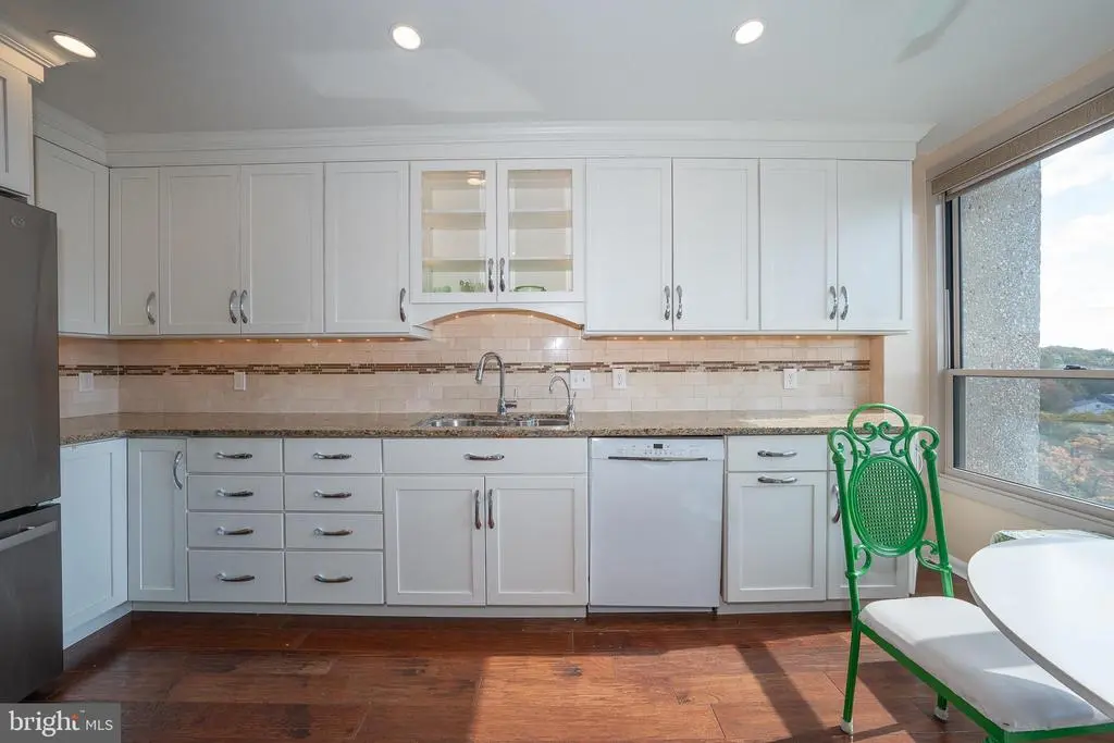 Beautiful Penthouse 3 Bedrooms, 2.5 Baths end unit wrap in the community of Green Hill is waiting for you!! This bright and sunny condo boasts 1910 sq ft of living space!! Entry Foyer with beautiful cherry hardwood floors, two hall walk-in closets and powder room. Foyer leads to a laundry area with a GE Energy Star Stackable washer (top loader) and dryer. Eat-in Kitchen, w/recessed lighting, granite counters, great cabinet space for your food storage, cooking equipment, silverware and dishes! Some Stainless Steel appliances, refrigerator, built-in microwave, double sink, electric cooking, dishwasher, built-In window seat with storage, complimented with a beautiful view! Large Living Room and Dining Room with cherry hardwood floors, recessed lighting and sliders from the dining room to the 1st balcony provide the perfect space for entertainment! Hallway leads to the Primary Suite with one large closet, one oversized walk-in closet and a beautiful bath with stall shower. Bedroom 2 offers a walk-in closet, sliders to the 2nd balcony, Bedroom 3 includes a wall-to-wall closet and an updated Hall Bathroom with a walk-in shower complete this wonderful living space. Beautiful views, closets galore, storage space, and 1 garage space #15 too!! This community features many amenities such as a 24 hour Gated Community, 24/7 Security, Doorman, Courtesy Bus, Library, Meeting Rooms, Elevator, & more! Conveniently located near shopping, train stations, Lankenau Hospital, etc. There is a Health Club, Indoor and Outdoor Pool available for an additional fee! Unit is being sold as is.