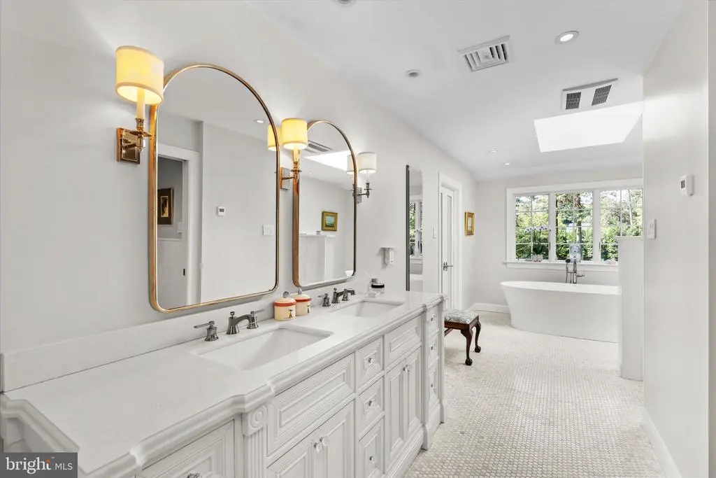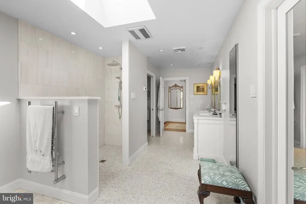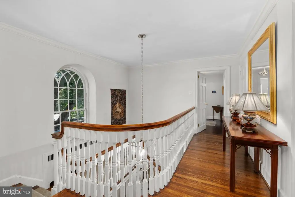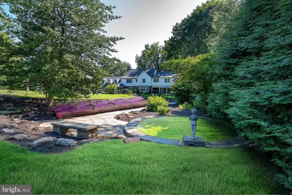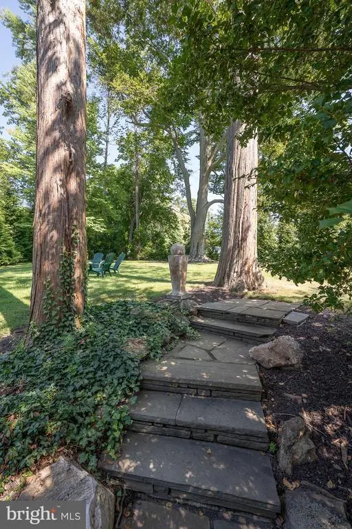 Classic and timeless, this Northside Haverford stone residence is gracefully sited on close to one acre of manicured grounds, where gardens, a shimmering pool, and tree-lined perimeters create a park-like setting. Approached by a circular drive that underscores its stately presence, the home reveals itself gradually balanced proportions, refined details, and interiors that have been thoughtfully modernized while honoring the architecture’s original spirit. A step-up center foyer introduces a striking axial view: through the dining room’s sweeping bay window with its intricate glass roof, the eye is drawn directly to the gardens and pool beyond. To the left, the formal living room offers an atmosphere of understated elegance. An oversized fireplace, flanked by tall south-facing windows, anchors the space, while richly stained hardwood floors, continuous throughout the main level, add warmth and cohesion. Another bay window provides symmetry when viewed from the rear, and French doors open to a covered stone terrace—an invitation to flow seamlessly between interior and exterior living. The kitchen is a study in contrast and comfort. Crisp white cabinetry plays against polished black stone countertops, while a substantial wood-topped island provides both prep and gathering space. A suite of Bosch appliances—including a steam/convection oven and dual dishwashers—makes the kitchen as functional for intimate dinners as it is for entertaining on a larger scale. Sunlight streams across the under-window sink, a small but significant detail that reinforces the room’s everyday ease. For moments of repose, the den offers a more intimate counterpoint: custom shelving, front-facing windows, and a brick fireplace create a retreat equally suited to reading or quiet evenings by the fire. Ascending the main staircase, an arched window becomes a focal point of architectural grace, as notable from the interior as it is when viewed from the façade. The primary suite, redesigned under current ownership, reflects both scale and serenity. The primary bath is anchored by a soaking tub positioned beneath a window, a spacious seated shower, and plenty of natural light from windows and large skylight. A newly created walk-in closet, complete with its own heating system, offers ample storage with a sense of luxury and care. Five additional bedrooms occupy the upper level—some connected by Jack-and-Jill baths, others with en-suite or adjoining arrangements—allowing flexibility and privacy. Anticipating the future, the attic has been spray-foam insulated, fully heated, and air-conditioned, ready for expansion should additional living space be desired. On the lower level, daylight streams into a casual gathering area with fireplace and deep window wells—an inviting setting for informal entertaining. A secondary staircase connects this space to the kitchen, leading also to a large laundry area, half bath, and generous storage. Outdoors, the home’s placement on its deep lot is deliberate and graceful. The covered terrace and poolside stonework blur the line between garden and architecture, while a recently re-roofed garden shed adds utility. A multi-car courtyard tucked to the rear offers discreet yet ample parking, underscoring the estate’s ability to welcome both intimate and grand occasions with equal ease. Classic and enduring, the home is one of balance and beauty—bright yet grounded, sophisticated yet welcoming—an estate of timeless appeal in one of Haverford’s most distinguished enclaves