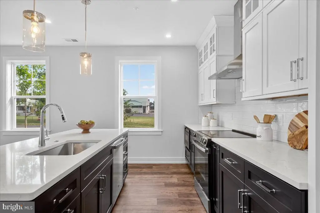 QUICK DELIVERY, end unit available immediately! Why rent when you can own? New Construction Home Available, 2 bedroom/2 bath, first floor home, is completely built for you! Engineered hardwood flooring is in place throughout this open concept floor plan. The many windows of this end unit townhome, offer an abundance of natural light. The gourmet kitchen with a spacious island, featuring quartz countertops, high-end cabinetry, upgraded stainless steel appliances, and designer fixtures make entertaining effortless and cooking a pleasure. A spacious living room, adjoins the dining area allowing wide, open space. The first floor primary suite with a walk in closet, and the primary bathroom with a beautiful tile design emphasizes the convenience of one floor living. A generous sized second bedroom, hall bath and laundry room, complete this well thought out floor plan. Located in the exclusive community of Lederach Village, in the heart of Harleysville and walking distance to local eateries. A thoughtfully crafted open floor plan with elegant finishes is available immediately, be in your new home for the holidays. - 7” plank engineered flooring - high end cabinetry and hardware - extensive woodwork and trim package -extensive recessed lighting and fixtures - exterior stone, vinyl siding and metal roof - private patio Located off Morris, entrance is directly across from Lederach Post Office. GPS: 690 Harleysville Pike, Harleysville, PA