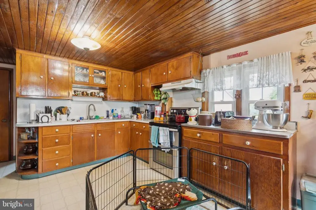 What a location! Set on a picturesque 4-acre lot directly across from the expansive Upper Salford Township Park, this property offers endless possibilities. Outdoor lovers will appreciate being less than a mile from the Perkiomen River Trail and just minutes to Green Lane Park—perfect for hiking, biking, fishing, horseback riding and more. The property includes a spacious barn, a detached garage, and a machine shed, making it ideal for hobbies, storage, or small-scale farming. The farmhouse features a full eat-in kitchen, main-floor laundry area, and a full bath on the first level, along with a dining area and spacious living room. Upstairs, you’ll find two roomy bedrooms, nearly equal in size, offering comfort and flexibility. Additional storage is conveniently located with a walk-up attic. Whether you’re seeking a charming home, a place for your workshop, or a small homestead, this unique property has so much potential in a truly unbeatable location.