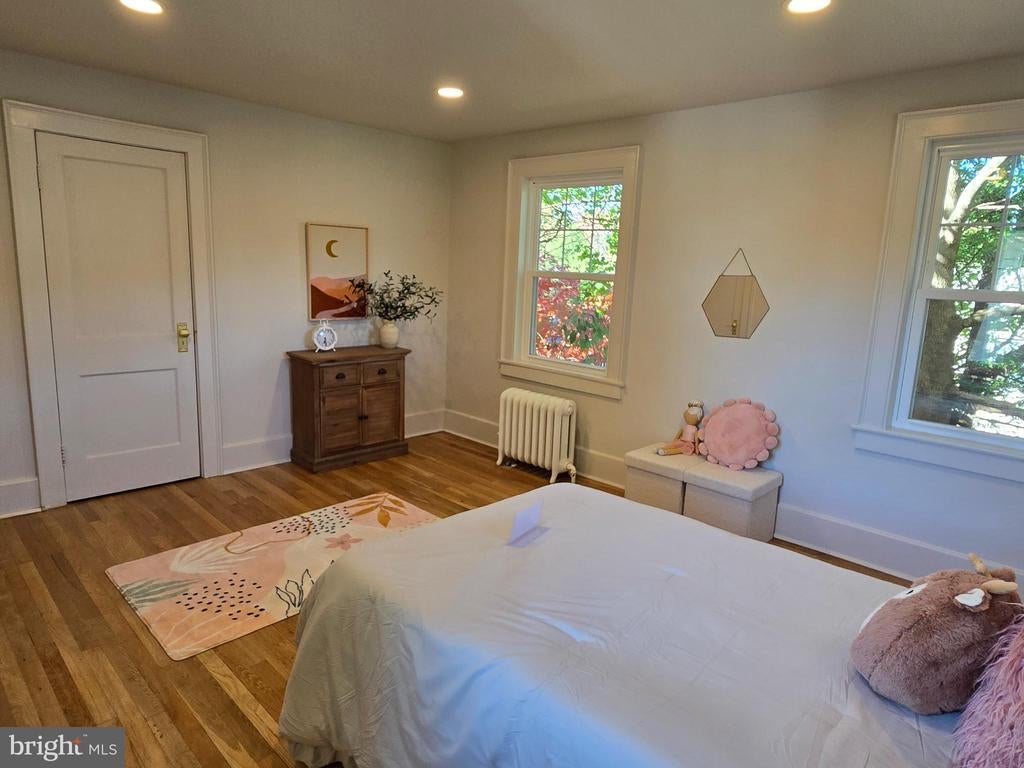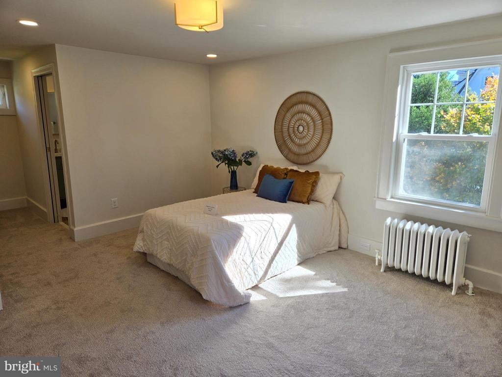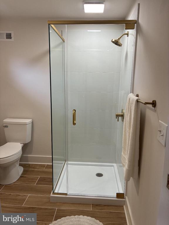 Stall Shower, Tub Shower, Carpet, Crown Molding, Recessed Lighting, Wood Floors