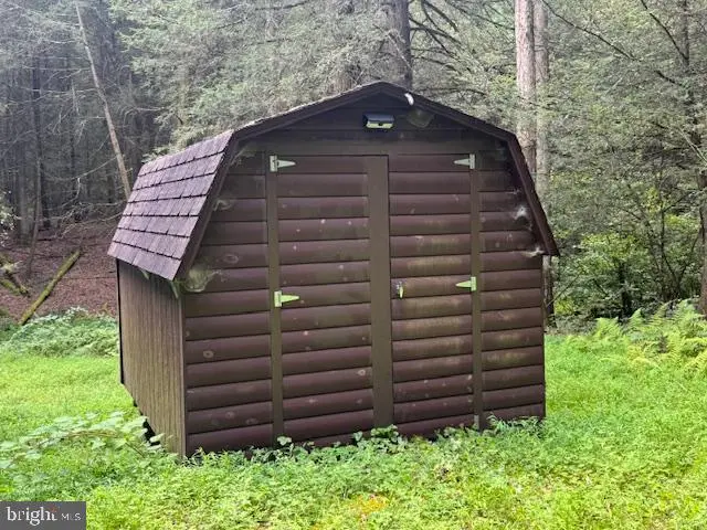 Camp Wolf Den #5-C-213 on leased DCNR Campsite on Rothrock State Forest in Coopers Gap. Log structure built 1990. Main level has living/dining with cathedral ceiling and woodstove, kitchen with appliances, and private bedroom. Second level is an open sleeping loft. 100-amp electric service allows all the conveniences of home, including a ductless mini-split for ultimate comfort. There is a large covered front porch, open rear deck, utility shed and outhouse/pit privy with electric. All furnishings are included. Located just minutes from US 322. Cash only, leased campsites are not financeable and purchaser must be a PA resident and not named on another existing leased campsite.