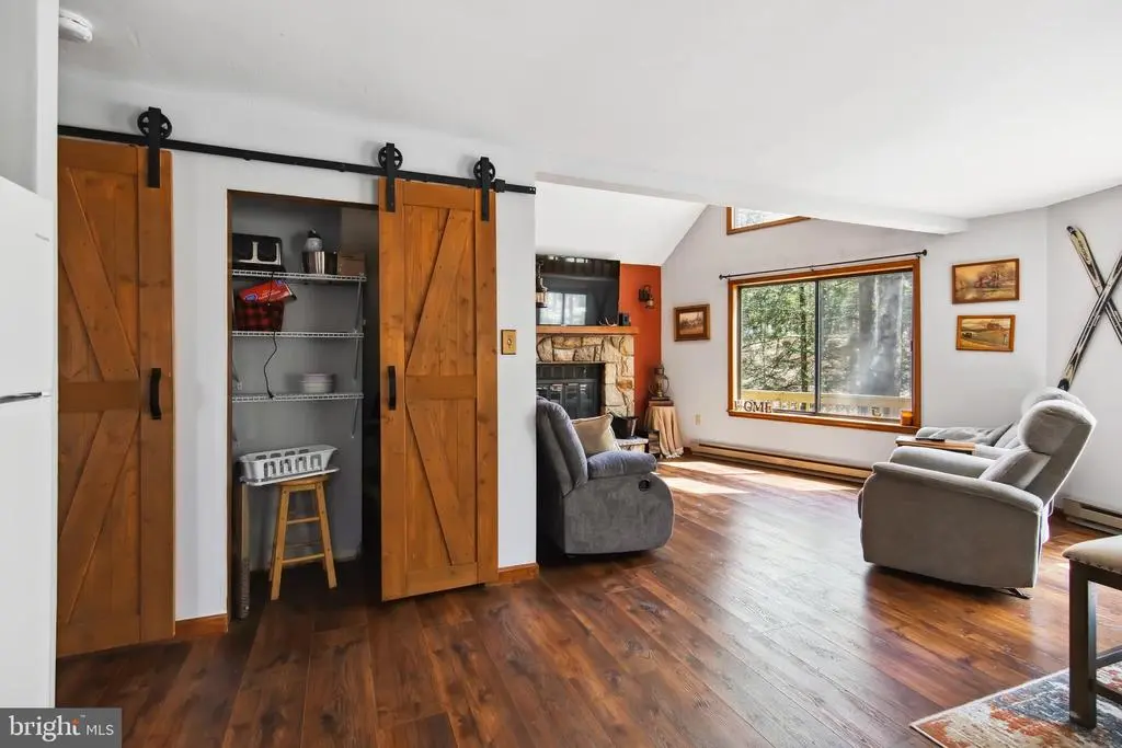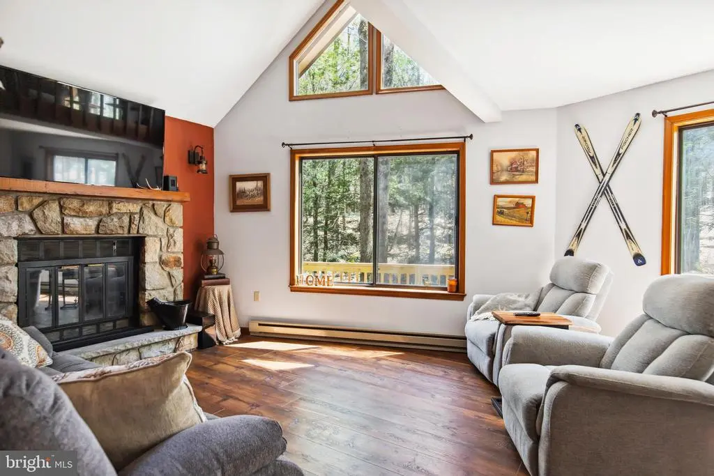 Discover this stunning 5-bedroom, 2.5-bath mountain chalet, perfectly situated on just under half an acre. Featuring a brand-new deck and a partially screened-in porch ideal for entertaining, this beautifully maintained home radiates vacation vibes. Located just a short walk or golf cart ride from the beach on Locust Village's second-largest lake, it's part of a vibrant, short-term rental-friendly community with 24-hour security and the only private ski lift in the area. Residents enjoy access to fishing, archery, birding, and ski clubs, plus weekly summer events for both kids and adults. Home is move in ready. Includes all furnishings, from major appliances and furniture to smallwares like dishes, glasses and bath towels. Cash flow ready! All just minutes from major ski resorts, golf courses, casinos, Pocono Raceway, indoor water parks, public hunting land, hiking, biking, and more.
