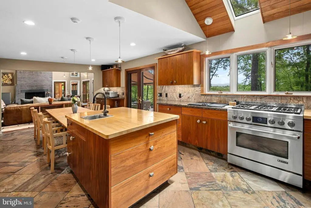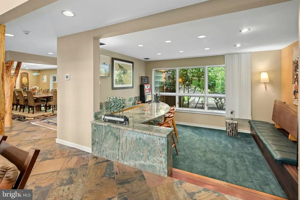 Bar, Bathroom - Jetted Tub, Bathroom - Stall Shower, Bathroom - Walk-In Shower, Built-Ins, Crown Moldings, Curved Staircase, Entry Level Bedroom, Exposed Beams, Primary Bath(s), Recessed Lighting, Skylight(s), Spiral Staircase, Upgraded Countertops, Wainscotting, Walk-in Closet(s), Wet/Dry Bar, WhirlPool/HotTub, Wine Storage, Wood Floors