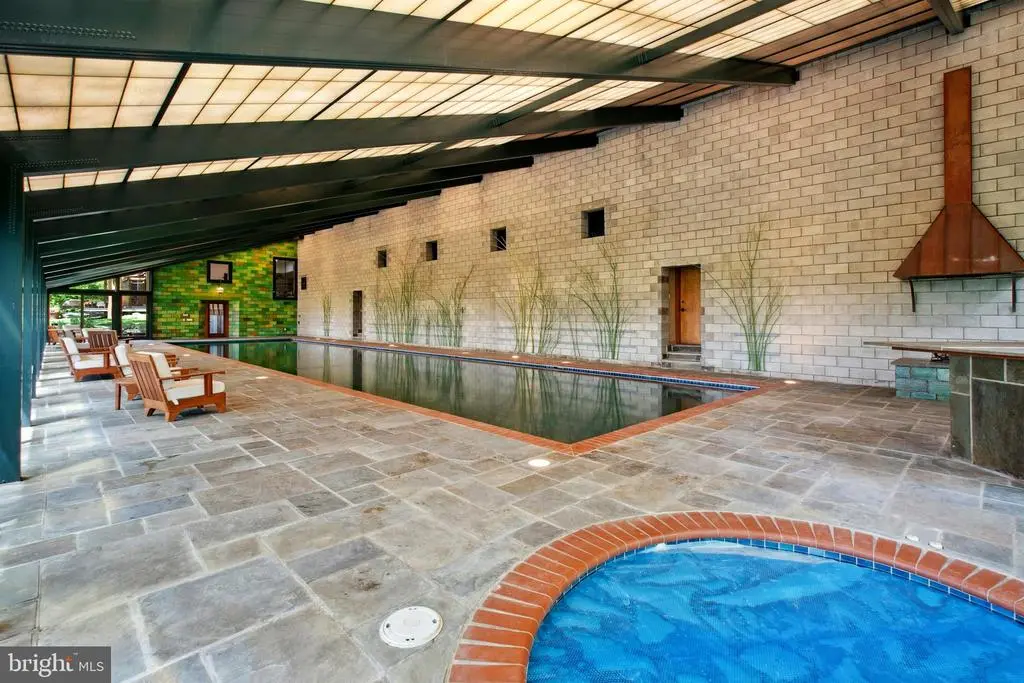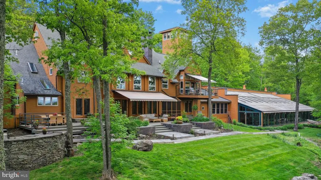 This stunning Pocono Mountains estate incudes an EXQUISITE INDOOR POOL AND FULL SIZE GYM! Indoor amenities abound, making this an ideal year-round retreat centered on 73 acres. Inspired by the beauty and magnitude of its surroundings this remarkable 13,000 SQUARE FOOT residence showcases all the fine materials and craftsmanship of an earlier age coupled with the drama, efficiency and conveniences of modern construction, all finely curated and meticulously maintained. Rare and unusual design elements welcome you to the lodge with an open dining room that will amply accommodate large gatherings and is appointed with Ironwood trees, natural flagstone floor and wall of windows. The voluminous great room was designed with extreme care to blend its strong architectural character and exceptional detailing into a dramatic and comfortable space punctuated by its cathedral ceiling, floor-to-ceiling brick fireplace, African rosewood floors and walls of windows to embrace the sun in the winter and the sun-dappled views in the summer. A thoughtfully planned kitchen, with high-end appliances and amenities to please the most discerning of cooks, opens to a large patio with outdoor kitchen, inviting al fresco dining. There should be no need to leave the compound for entertainment. The lodge offers an acoustically engineered MEDIA ROOM, SUNKEN BAR ROOM with fully outfitted marble bar, LIBRARY and a COMMERCIAL GYM. The star of the recreation options is the INDOOR SALTWATER POOL AND SPA complete with desert air system. Here heated flagstone floors and walls of glass doors frame the pool and invite one to swim while the snow flies. Refreshments will be served from the poolside bar and the unique open hearth propane fireplace will enhance the ambiance. Dual bathrooms are conveniently located steps away. The second floor primary suite is a sanctuary that draws you through glass doors onto the private balcony to take in the distant mountains with no signs of civilization in view. Here every amenity is elegantly embraced in the adjacent sitting area with fireplace, bedroom area with cathedral ceilings and retractable projection screen. The ensuite bath offers marble steam shower, whirlpool tub and marble vanity. Dual closets and a dressing area with handsome built-ins will amply accommodate your wardrobe. In addition to the primary suite five additional bedrooms, including TWO FIRST FLOOR BEDROOM SUITES, will offer sanctuary to friends and family. Comfort is ensured by a commercial whole-property generator, intricate heating and cooling systems and high-tech security system. A historic c.1700s barn was carefully disassembled from its original location and reassembled on the property to provide HEATED GARAGING for 12+ cars and collections. Heated floors, insulated walls and ceilings, remote controlled sliding doors, washer and dryer and separate security system provides enviable workspace. The Pocono Mountains with its four seasons of natural beauty, clear lakes and rivers, luxurious resorts and colorful festivals, has been a beloved vacation destination for generations. When you need to leave this extraordinary oasis you will be delighted to know that grocery stores, restaurants, resorts and ski slopes are a hassle-free 15 minutes drive. POCONO SKI RESORTS ARE JUST A SHORT DISTANCE AWAY! New York City is a world away, but can be easily accessed in two hours via Interstate Route 80.