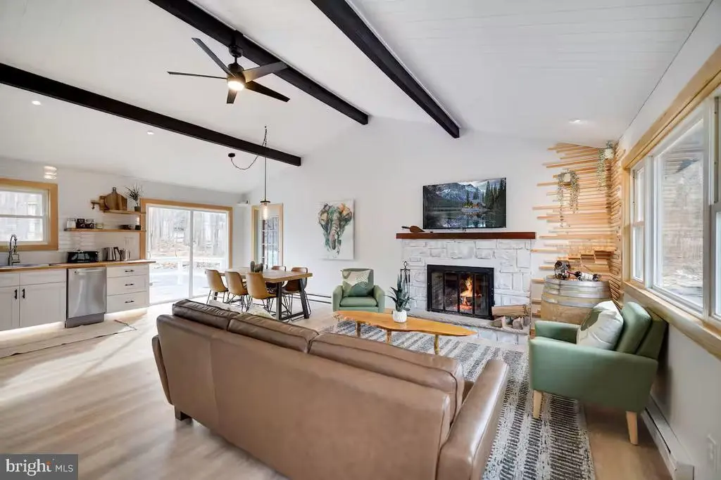 Welcome to your dream retreat in the heart of Mount Pocono! This beautifully updated ranch home features 3 spacious bedrooms and 1.5 baths, nestled on a serene, wooded lot that offers both privacy and tranquility. Step inside to discover a cozy living space highlighted by a gas fireplace, perfect for those chilly evenings. The inviting kitchen flows seamlessly into the family room, where you can enjoy the comfort of the mountains during the summer months. The home is designed for relaxation and entertainment, boasting a delightful wine nook and an outdoor eating area that beckons for al fresco dining. Outside, indulge in the ultimate outdoor lifestyle with a hot tub, a wood fire pit, and a grilling area, ideal for gatherings with family and friends. Explore the community’s amenities, including picturesque lakes, skiing opportunities, and scenic hiking trails, ensuring there's always something to do. Even in the warm summer months, the home remains comfortable thanks to ceiling fans and cool evening breezes, making air conditioning in the common areas a luxury rather than a necessity. This property has a proven track record as a successful Airbnb rental for over two years, generating consistent income. Whether you’re looking for a personal getaway or an investment opportunity, this ranch home is a perfect choice. Don’t miss your chance to own a piece of paradise in Mount Pocono! The Locust Lake Village allows golf carts and ATV's within the community. Also boasts several lakes for water sports and swimming, tennis courts and play areas. This home is being sold fully furnished.