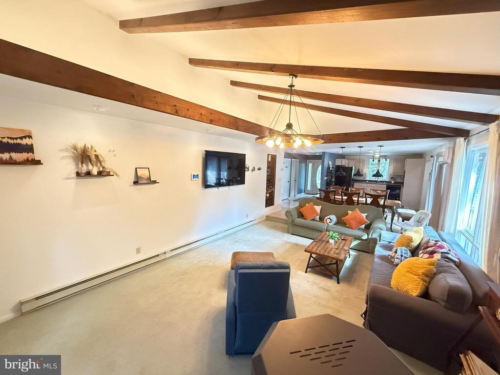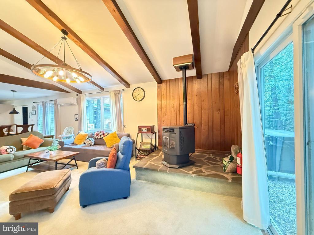 Carpet, Exposed Beams, Wd Stove Insrt, Wood Floors