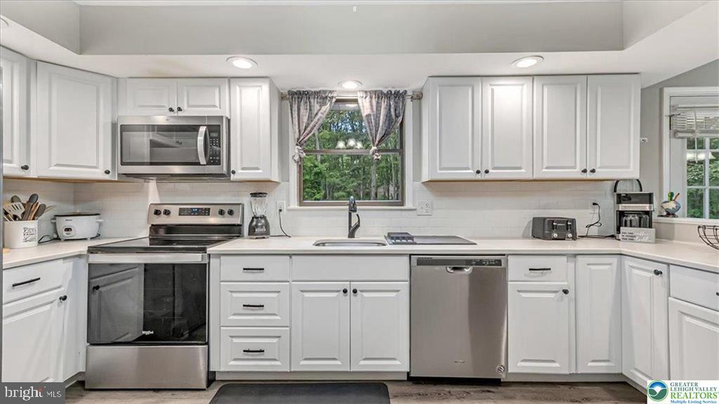 Drive into your private oasis up your expansive driveway to your beautiful home nestled on over an acre in the heart of Tannersville. Natural light floods your grand living room with oversized windows, complimented with gleaming hardwood floors. Spacious 6 bedrooms to fit the family. Remodeled kitchen with stainless steel appliances and quartz countertops. Upgraded bathrooms and premium flooring throughout. A lower-level family room to enjoy movie nights or game days. Step outside and entertain with a sprawling deck designed to host. Walk down to roast some marshmallows at the firepit or grab the basketball and shoot some hoops at the pro grade basketball court. Just a short drive to the renowned Crossings shopping outlets, major highways, resorts, restaurants and entertainment. Unmatched quality with comfort and luxury. Schedule your showing and see it for yourself!
