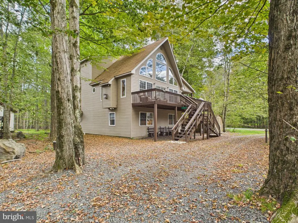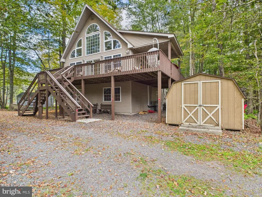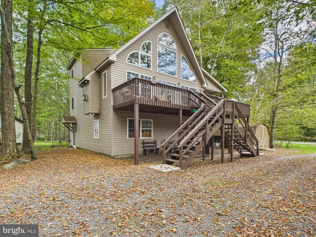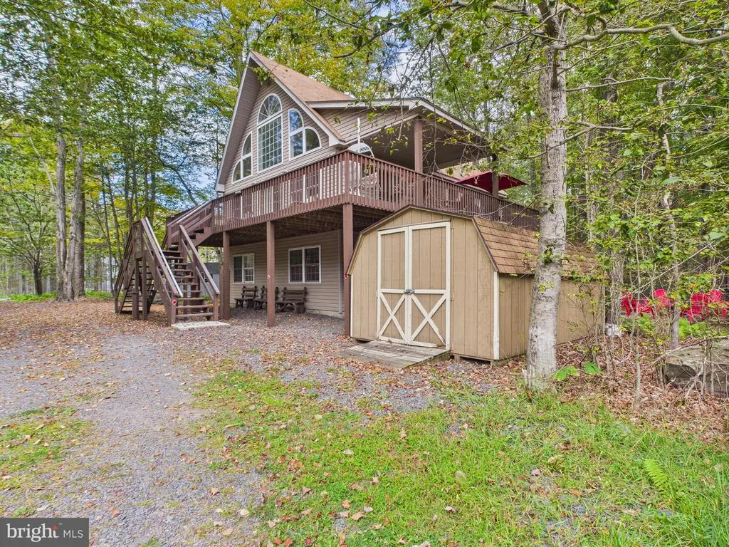Spacious Contemporary Chalet in the gated, amenity-filled community of Arrowhead Lake. This 4 bedroom, 3 bath chalet has lots of natural light. Lower level has a bedroom, bathroom and a family room. Main level has vinyl hardwood looking floors in the kitchen along with stainless steel appliances. Dining room has sliders to outside deck. Living room has a stone faced propane fireplace and sliders to the deck. 2 bedrooms are on the main level with a full bath and a linen closet. Upstairs level has a small loft, a bedroom and a full bath. Outside deck, stone driveway, and a shed for storage complete this home. Located on a corner lot that is close to pool and beaches! Arrowhead Lake is a gated community with security, 3 heated swimming pools, 2 lakes for fishing/swimming and boating, tennis courts and bocce ball. Many of these activities have occurred over the years including bonfires, carnival, Zumba, water aerobics, swim team, potluck dinners/breakfast and summer camp.
