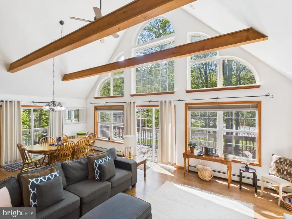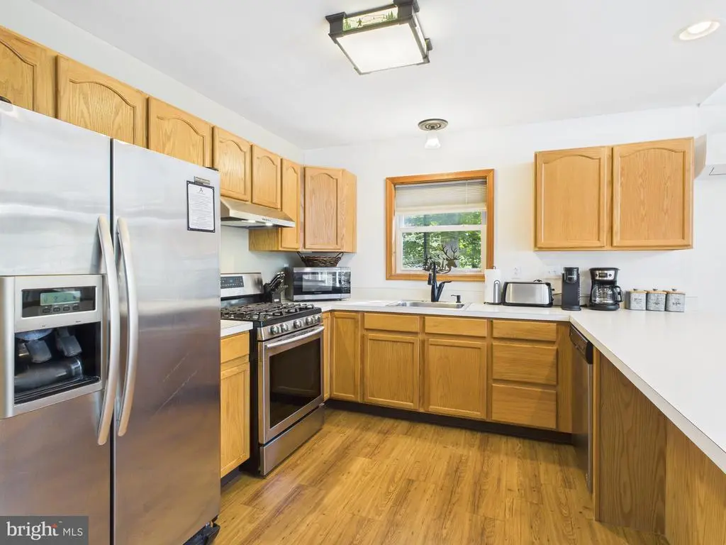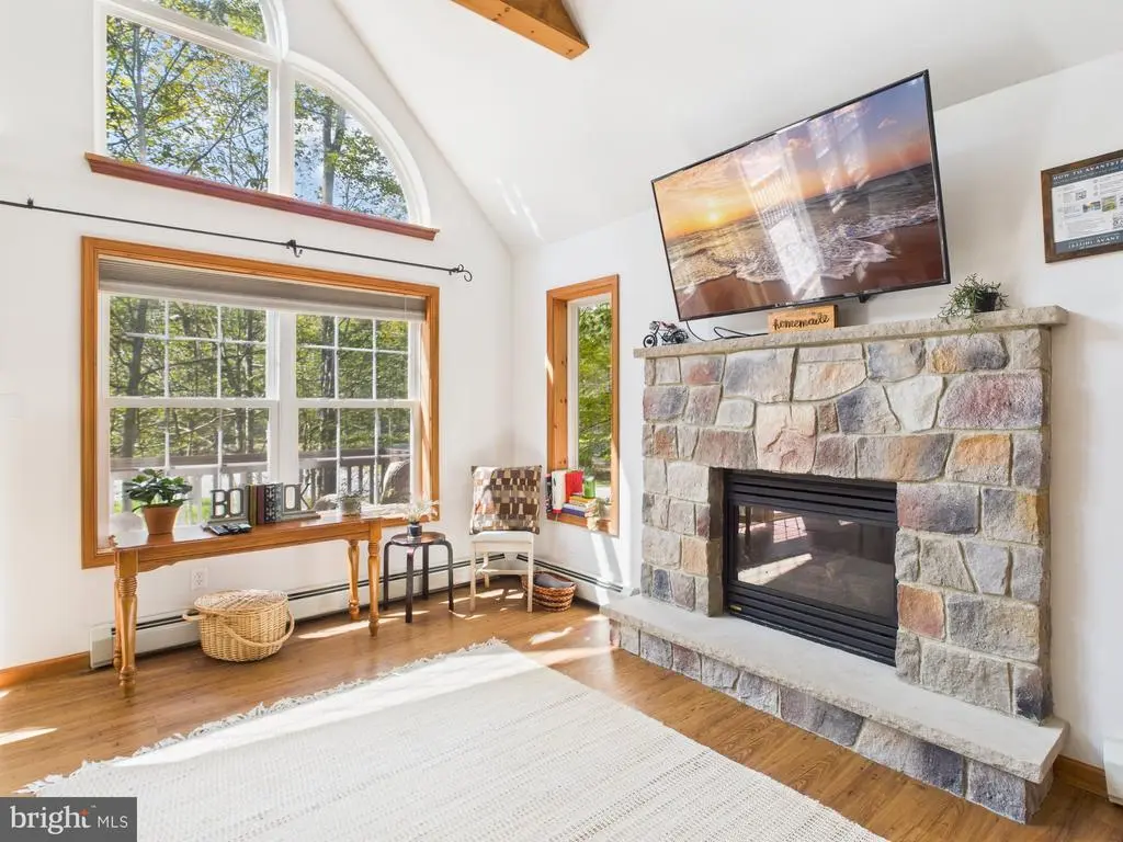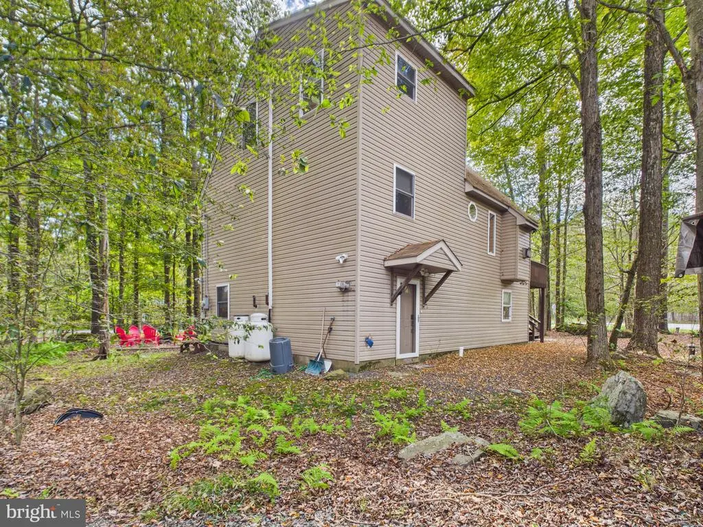 Spacious Contemporary Chalet in the gated, amenity-filled community of Arrowhead Lake. This 4 bedroom, 3 bath chalet has lots of natural light. Lower level has a bedroom, bathroom and a family room. Main level has vinyl hardwood looking floors in the kitchen along with stainless steel appliances. Dining room has sliders to outside deck. Living room has a stone faced propane fireplace and sliders to the deck. 2 bedrooms are on the main level with a full bath and a linen closet. Upstairs level has a small loft, a bedroom and a full bath. Outside deck, stone driveway, and a shed for storage complete this home. Located on a corner lot that is close to pool and beaches! Arrowhead Lake is a gated community with security, 3 heated swimming pools, 2 lakes for fishing/swimming and boating, tennis courts and bocce ball. Many of these activities have occurred over the years including bonfires, carnival, Zumba, water aerobics, swim team, potluck dinners/breakfast and summer camp.