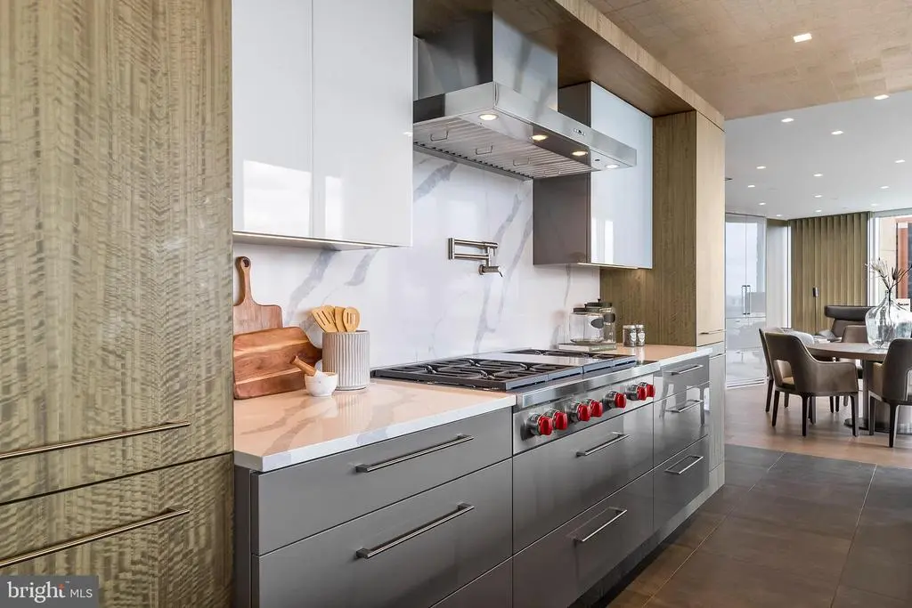 Welcome to the 500 Walnut Street Building. A prestigious residential high-rise in Philadelphia’s Society Hill neighborhood where modern luxury meets the timeless charm of historic Philadelphia. Pull into the secure parking courtyard where a state-of-the-art automatic parking system parks and retrieves your car. Unit 1500 offers an exclusive living experience consisting of 4300 sq ft of luxury and elegance equipped with a full home automation & entertainment system that allows lights and sound system to be controlled by your voice or touch of a button. The open concept of the living room, dining room, kitchen, and breakfast nook creates a seamless and expansive living space. This open layout allows for easy flow and interaction between the different areas, fostering a sense of connectivity and spaciousness. Floor-to-ceiling windows adorn the living spaces, allowing abundant natural light to flood the interior and providing panoramic views of the surrounding cityscape, including historic views of Independence Hall and the Delaware River front. Equipped with state-of-the-art appliances, the kitchen is a haven for culinary enthusiasts. High-end brand and top-quality fixtures, such as professional-grade ovens, built in refrigerators and ample storage options in the Eucalyptus cabinetry make it easy to cook and entertain with ease. Within the kitchen area, a cozy breakfast nook offers a casual dining spot. It is complemented by one of two balconies that provide an outdoor retreat overlooking the Delaware waterfront. The media room is a dedicated space for entertainment and relaxation and offers a place to unwind and indulge in your favorite form of entertainment. The primary suite is a luxurious retreat with a balcony, fireplace, full bath, and spacious walk-in closet. It offers a serene and elegant ambiance, providing you with a private haven of comfort and indulgence. Two other bedrooms, both of which have its own bath and are designed to offer comfort and privacy. Building amenities include a 50-foot lap pool, fitness center, spa & sauna, a billiard room, a 4,000 sq ft, open air terrace overlooking Independence Hall and a boardroom with a fully equipped catering kitchen. The 500 Walnut building offers top-of-the-line features and unrivaled convenience providing a luxurious and effortless living experience. The exquisite amenities in unit 1500 have been carefully considered to enhance your living experience. All your needs will be met and daily life will be more convenient. This unit is not to be missed.