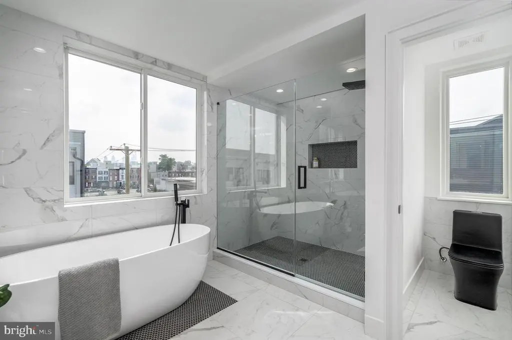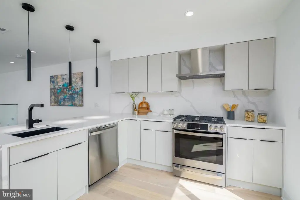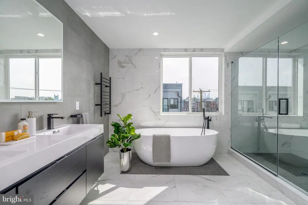 ASK FOR MORE INFO ON THE RATE BUY DOWN!! Introducing Hagert Estates, a luxury new construction development in the heart of Fishtown. This gorgeous gated development boasts every feature today's Buyer wants, all at an amazing price. Enter from your beautiful front door or your oversized GARAGE and you'll be greeted by the sun-filled living room featuring 15ft+ ceilings, and a contemporary white oak floating staircase with glass railings. Ascend to the second level where you'll find the kitchen and dining area, equipped with a GE Profile stainless steel appliance package, a built-in coffee machine, Quartz countertops, European Shaker cabinetry with matte black hardware, and a rear balcony perfect for enjoying the morning breeze and city views or evening grilling. The third floor offers two generously sized bedrooms, each with two closets, and a shared bathroom with a swinging glass door to the bathtub, an oversized linen closet, and modern designer tile selections. The fourth floor boasts a large primary suite with designer pendant lights and a Juliet balcony. This floor also conveniently features a wet bar with sink complete with plenty of cabinetry and a Quartz countertop. The Primary bathroom is straight from Architectural Digest! This beautifully designed wet room features a dual sink floating vanity with an LED backlit mirror, and a gorgeous free-standing soaking tub. The oversized shower includes multiple shower heads. The primary bathroom also includes a separate water closet for privacy. The laundry room is conveniently located on this level, and the walk-in closet is fully furnished with California Closets built-ins. The rooftop deck provides unobstructed views of the Benjamin Franklin Bridge and the city skyline, perfect for watching fireworks with friends. The finished basement has tons of potential including a full bathroom with a shower, a large storage room, room for a sauna or glass enclosed wine cellar, a fourth bedroom or office space, and two additional closets for ample storage. Each unit comes with a 10-year tax abatement for new construction and a one-year builder's warranty. The property is located one block from the I-95 N and S on-ramps, making commuting a breeze. *Photos are of model homes and may not portray actual finishes in this home.