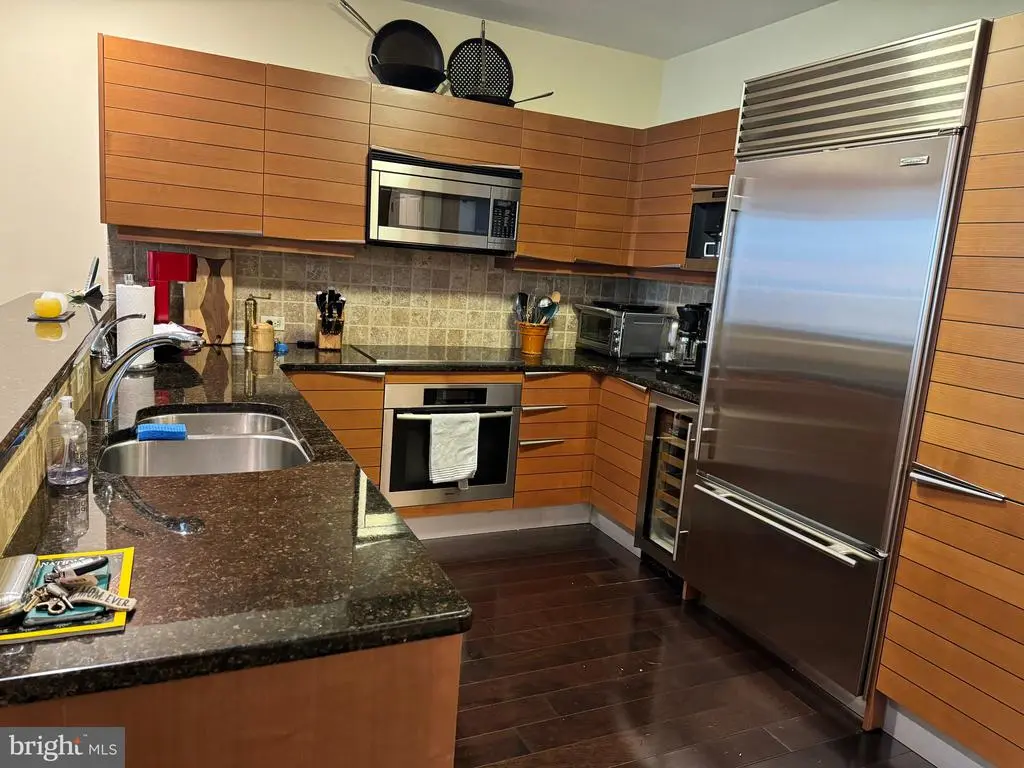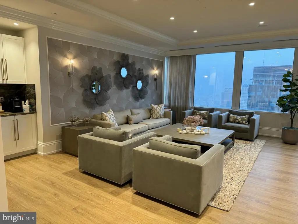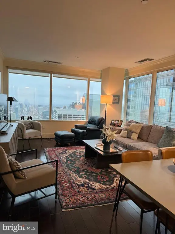 Live on top of the World…Two Liberty Place! is the place to be. This condo on the 42nd floor is a 1 bedroom plus den that can be used as a bedroom / 2 baths unit with spacious open floor plan with hardwood floors. Then walk into this sizable great room surrounded by glass walls of windows including a Chefs Gourmet Kitchen with stainless Miele Appliances, Sub Zero Fridge and Wine Fridge, built-in Miele Expresso maker and granite countertops with Island breakfast bar and Dining area to entertain. Down the hall you will find Den/Office, 1 large private bedrooms with their own marble baths and generous custom closets. Onsite services, 24 hour concierge, doorman, car service, fitness center, endless pool, Yoga studio, meeting room, Spa lounge, Sauna/massage room, Media/Billiard Room and Skyline Lounge. Valet and additional parking below the building for an extra fee. Walking distance to Restaurants, Shops, Parks, Cultural Events and NightLife. This luxurious lifestyle with maximum privacy and convenience!