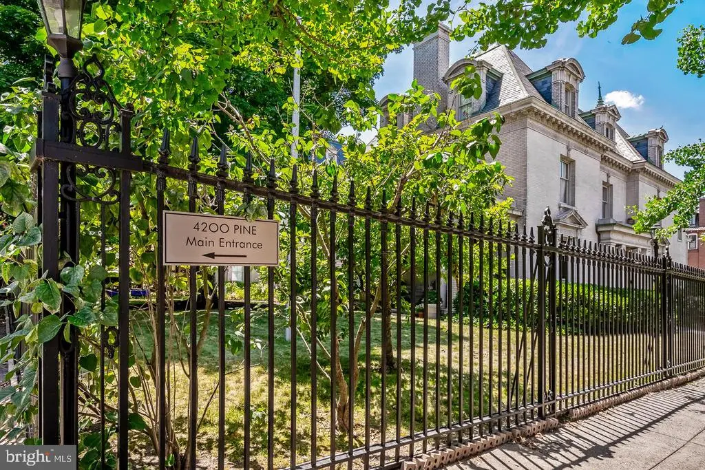 Bathed in natural light, space and history, this charming and stately home in Spruce Hill awaits its new owner. With its commanding presence, the home is located on the corner of Pine Street and 42nd Street. The exterior of this home features a spacious and lush lawn, a large private side porch, shade trees, beautiful perennial plantings, wrought-iron fencing, and reserved on-site parking for residents and guests. Though essentially a private residence, it is part of the 4200 Pine Condominium. Situated in the Penn-Alexander School Catchment, this historic 4 bedroom/3.5 bath home was crafted from a larger mansion. Originally designed by the Philadelphia architect Horace Trumbauer. 4200 Pine is one of the most significant homes in the City of Philadelphia. This elegant historical residence has been meticulously maintained, with extensive plumbing and electrical upgrades in 2011. Features include 4 fabulous floors of luxury, 3.5 baths, the full baths have heated flooring, 9-foot ceilings, 3 working fireplaces, and exposures offering an abundant amount of natural light, intricate woodwork and plasterwork details which include Wedgwood inlaid tiles, and modern interior touches. While the bones of this home remain intact, contemporary touches harmonize seamlessly with original features. The grand porch is original, as are the Mercer tiles. Original wooden floors abound, and pocket doors remain elegantly functional. Additionally central air conditioning has been installed, with the practicality of 2 separate zones. Enter through the magnificent original doors, into the stunning foyer that contains a discreetly placed powder bath. The first floor reveals a recently renovated open-concept space, perfect for family time or entertaining guests. With a living room flowing into a dining area and kitchen, the cook is always included in the conversation. An entertainer's dream floor plan. The kitchen boasts Wolf, Bosch and Miele appliances. Original sets of French doors open onto the enormous porch and outdoor lawn and gardens. A modern floating staircase leads to the second floor. Here, the primary suite features an enormous bed chamber, a magnificent original plaster medallion on the ceiling, a large dressing room with a walk-in cedar closet, tastefully appointed full bath, a remote-controlled gas fireplace, beautiful original details, and exposures on three sides. The 3rd floor contains 2 bedrooms, plus a full bath and Bosch washer and dryer. The cavernous lower level, with an abundance of natural light is the perfect multi-functional space to serve as an office, gym, secondary entertainment space, or other purposes. Additionally, there are five storage spaces to use as needed. This home also boasts, energy-efficient windows throughout and a tankless hot water heater. Though this home is part of the 4200 Pine Condominium, it retains a unique status as it is on half of the original Eishelor family mansion. Owners enjoy the advantages of living in a private residence, landscaped lawns and securely gated courtyard: on-site parking, on-site trash disposal and recycling; a property manager; and an association that covers the roof, exterior, trash and snow removal, and more. A leafy, lively and lovely historic neighborhood is yours to explore. Clark Park and its Farmers’ Market, Jazz and Movies under the stars, the West Philadelphia green trolley line, the Penn-Alexander Catchment, and so much more. Within an easy walk are the local food Co-op Mariposa, Baltimore Avenue’s Restaurant Row, Renata’s, the Bottle Shop, Lil Pop Shop, CVS, and many coffee shops, grocers, restaurants, boutiques, museums, and a movie theatre. The location is in close proximity to HUP, CHOP, PENN, Drexel, Wharton, and University of the Sciences. Additionally, it's very accessible to Rittenhouse Square, 30th Street Station, and the rest of Center City by car, bike, or SEPTA.