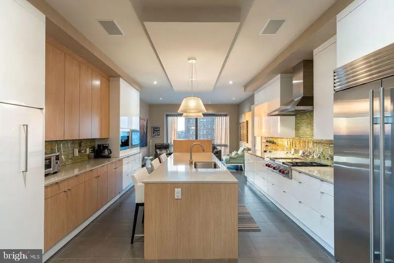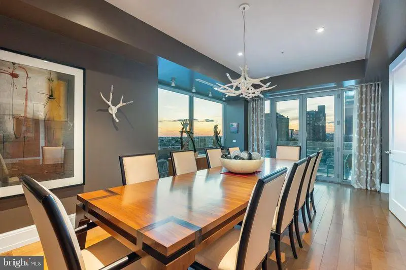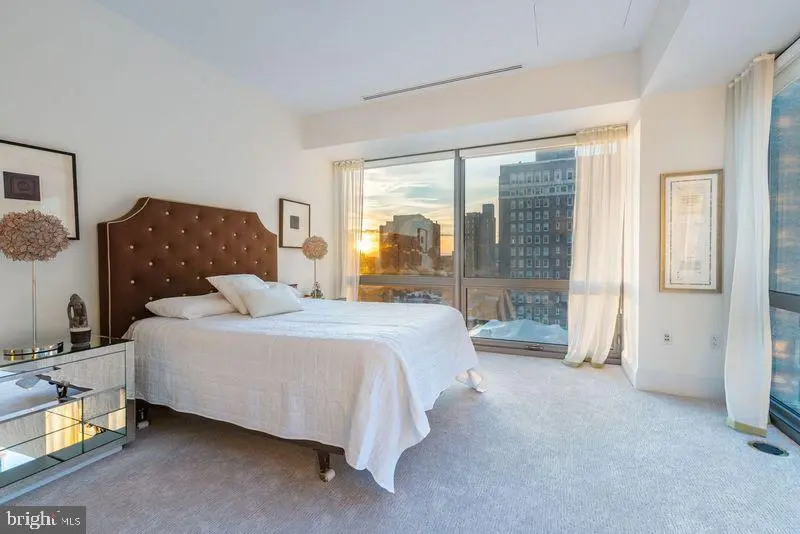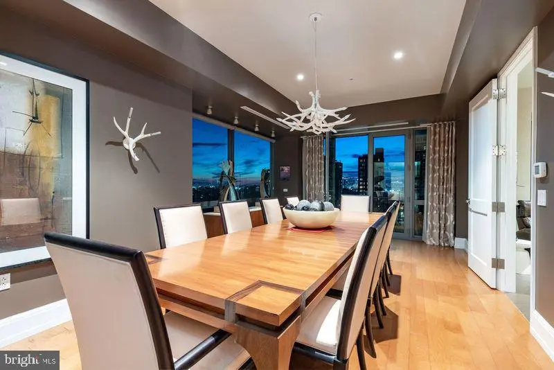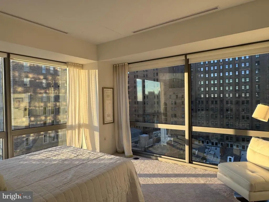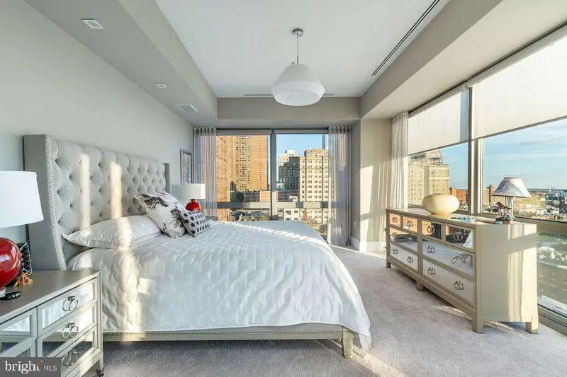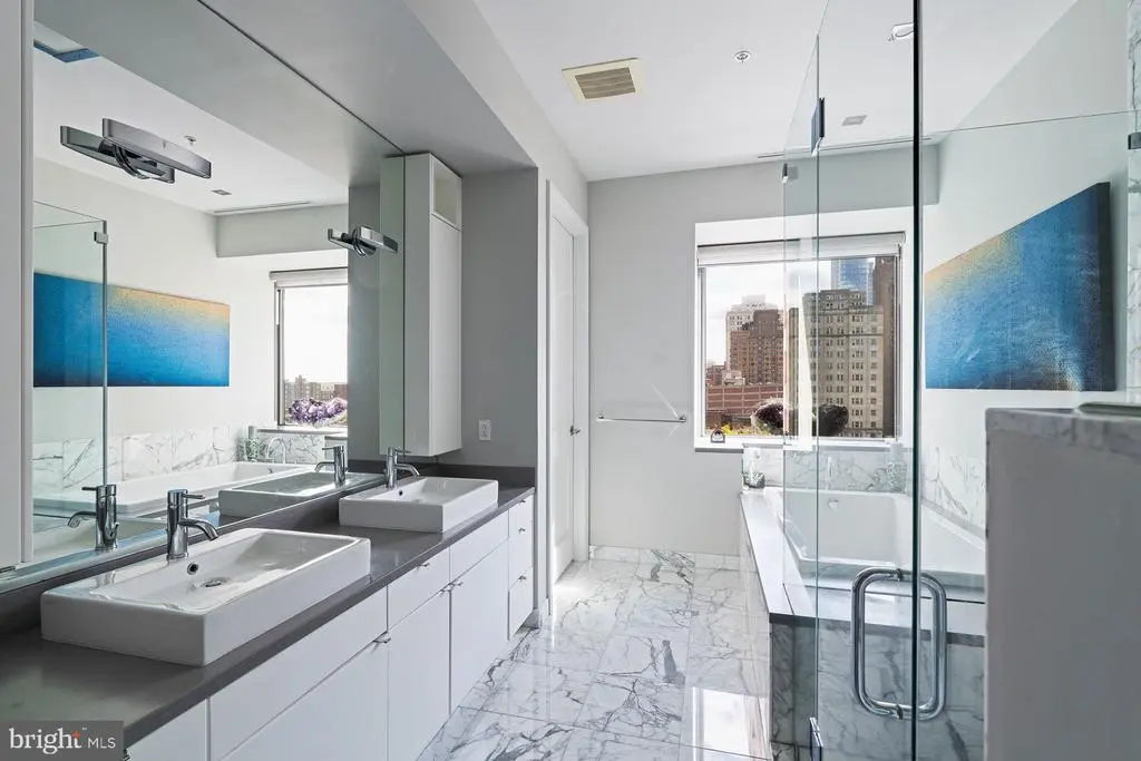 Located in the luxurious and prestigious 1706 Rittenhouse Square Condominium. This very Private Modern building seamlessly blends elegance with privacy. With only 31 exclusive Residences spanning 31 stories high. 1706 offers an intimate, upscale living experience. Residence 801 is a masterpiece, featuring very high ceilings and floor to ceiling windows on four sides and 4,166 square feet. This four-bedroom residence offers breathtaking views from every room. A private, keyed elevator opens directly to your private foyer leading into a grand Living Room with floor-to-ceiling windows and glass doors that open onto a terrace—perfect for enjoying both indoor and outdoor living. A Large Dining Room Seats 12-14 or more for dinner parties and Holidays. The design emphasizes seamless entertaining, with Two Terraces and panoramic views from every angle. Sunlight floods the interior, complemented by 10-foot ceilings and wide plank flooring. The gorgeous eat-in kitchen features a spacious casual dining area with stunning city views, custom cabinetry, quartz countertops, high-end appliances, and a large center island—ideal for cooking and entertaining. The primary suite is a private retreat, offering a king-size walk-in closet, and an Exquisite Bathroom with a large soaking tub, a separate large glass shower, dual vanities, marble throughout, and luxurious fixtures. Three additional sunlit bedrooms feature generous closets along with stunning views. The fourth bedroom is currently used luxurious home theater and screening room. 1706 Rittenhouse Square has Amazing Amenities. The Concierge offers a chauffeur-driven car to take you around the city. Swim in the Lap Pool, Sit in the Sauna, and/or work out in the Gym. There is a Conference Room, Party Space, and a Catering Kitchen. Read a Book or work on your Laptop in the Private, Lushly Landscaped Garden, and 2 Parking Spaces are included.