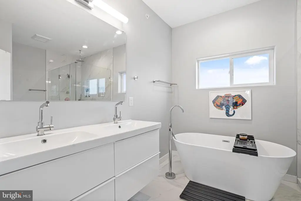 Welcome to 1751 S Taylor Street, a dazzling, three-year-old gem in the heart of South Philly’s most vibrant and sought-after neighborhood! This 2022-built beauty radiates modern elegance with stunning hand-scraped hardwood floors, sophisticated crown molding, and intricate custom millwork throughout. The chef’s kitchen is a true masterpiece, featuring a sprawling island, top-tier Samsung Stainless Appliances, soft-close Shaker cabinetry, and sleek solid stone countertops that make cooking feel like a luxury experience. Pamper yourself in the spa-inspired bathrooms, where imported Porcelain & Marble tiles, seamless glass showers, and modern freestanding tubs with rainfall shower heads create the ultimate relaxation haven. The Master Suite is your personal sanctuary, with a sun-drenched bay window and a spacious walk-in closet. And just upstairs, your private rooftop deck offers jaw-dropping 360-degree views of the Philadelphia skyline—an entertainer’s dream! With cutting-edge SmartHome technology, including WiFi Thermostats, Smart Deadbolts, and RING Video Doorbells, you can control your home with ease, whether you’re lounging on your rooftop or away on vacation. Bluetooth surround sound and convenient USB outlets elevate your living experience. The full backyard provides the perfect space for grilling, lounging, or enjoying a peaceful retreat. Step outside and you’re just moments from the best of South Philly—Dock Street Brewery, South Philadelphia Tap Room, Sardine Bar, and an array of eclectic restaurants and bars. With 7 years left on the 10-Year Tax Abatement, this isn’t just a stunning home—it’s an exceptional investment. In addition, this home qualifies for $10,000+ in grants for owner occupants, contact the listing agent for details! Don’t miss your chance to own a slice of this dynamic, rapidly-growing community – schedule your tour today!