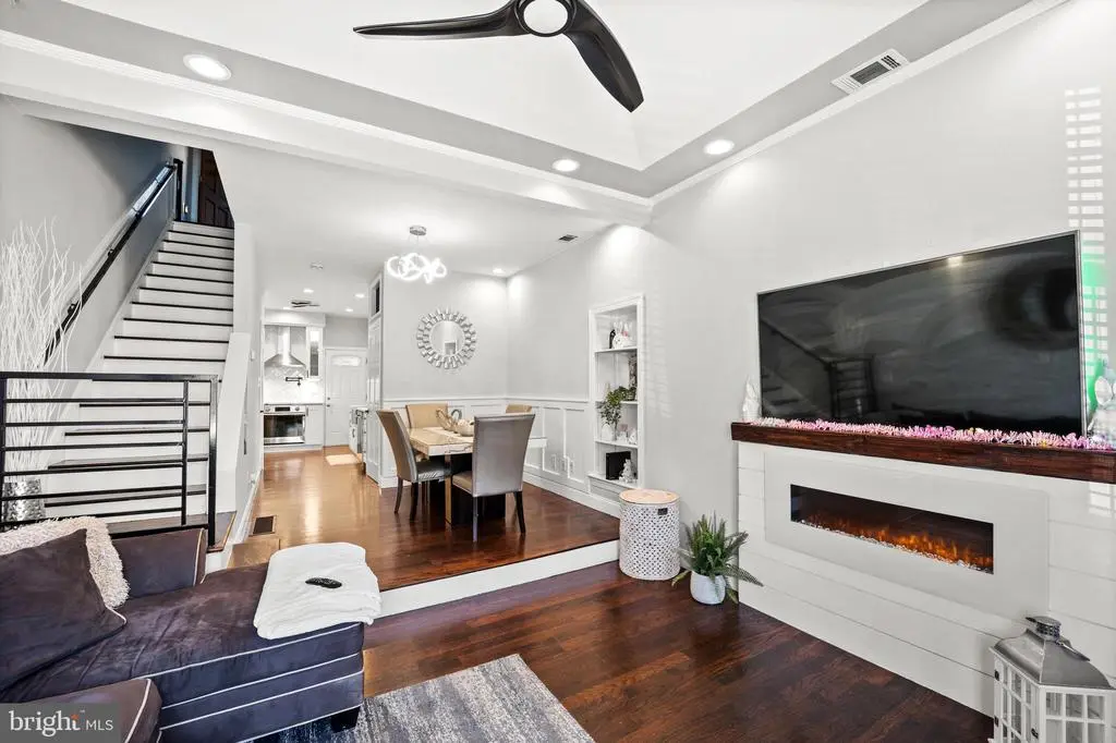 Welcome to your new home, where warmth and comfort greet you at every turn. Upon entering, you’ll find soaring tray ceilings with both under mount and recessed lighting, dark rich real hardwood floors, a modern electric fireplace. The kitchen is a culinary dream, equipped with stylish cabinetry, quartz countertops, a pot filler, a farmhouse sink, and premium appliances, making cooking enjoyable and effortless. Through the kitchen, step outside to a charming deck with a ceiling fan, ideal for morning coffee or stargazing. Upstairs, discover two spacious bedrooms, a modern bathroom, and a remarkable primary suite with a generous walk-in closet. The finished basement features high ceilings, recessed lighting, and a full wet bathroom, perfect for pet clean-ups and laundry. Enjoy modern comforts with a newer heating and cooling system, upgraded 200-amp electrical service, and a 50-gallon water heater. This fantastic home is ready for its new owners. Schedule your tour today!