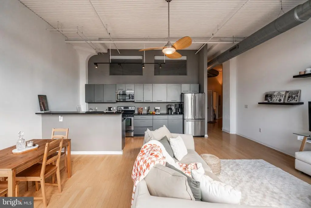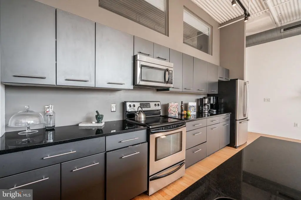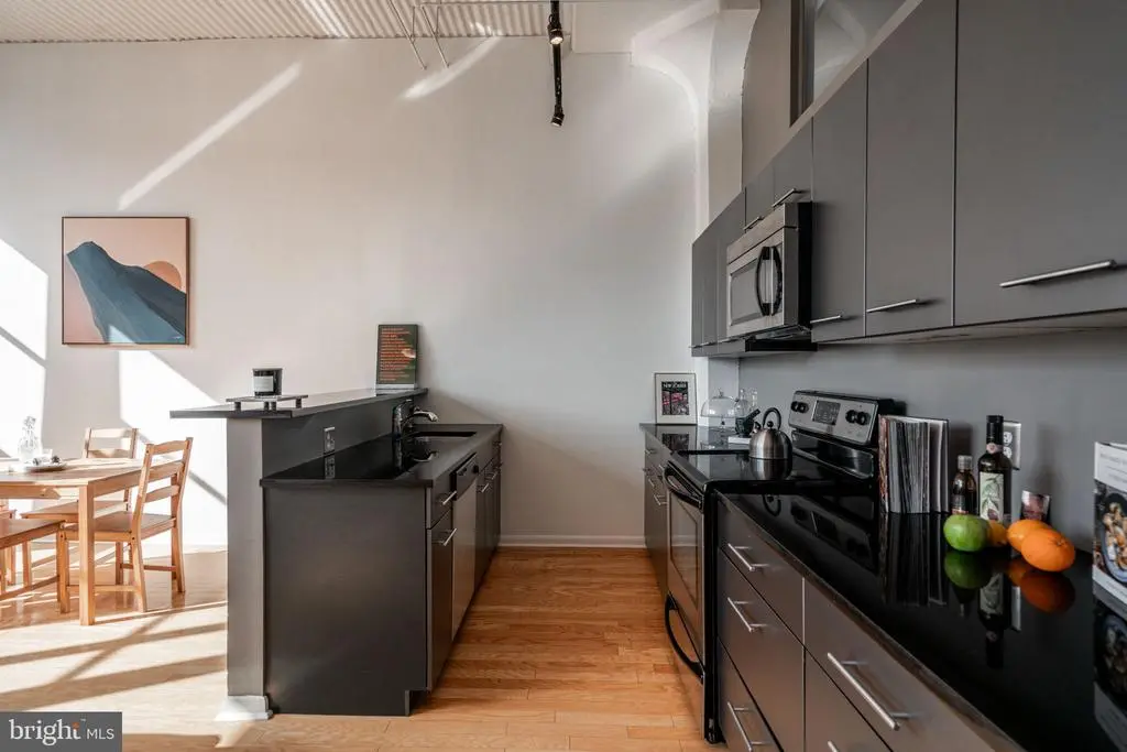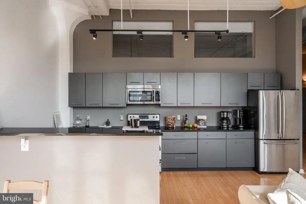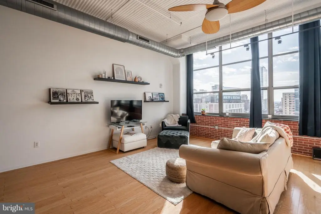 Incredible Value !! Welcome to The Larkin! The beautiful 176 Unit historical building in Logan Square. Formerly the site for the Philadelphia Daily News, this chic New York Style loft building blends the look of industrial commerce with modern contemporary design. The South facing unit has wonderful unobstructed views of the Center City skyline. 1000 sqft of Open concept living and dining, gets abundant light from its massive windows. A true fully enclosed 1 Bedroom space, ample closet space. Modern kitchen and bathroom finishes with a tasteful color palate to contrast the light hardwood flooring throughout. Washer dryer in unit. Exceptional Amenities - - 24hr doorman front desk, lobby and smooth elevator, large gym fully equipped. Deeded Parking space in attached garage - direct access into the building. Coffee and groceries at your convenience - Starbucks, Trader Joes, Giant foods. Quick walk to Market Chestnut and Rittenhouse shopping. Schuylkill River trail to exercise and picnic. Museums and sites up and down the parkway. Easy Access to I-76 / 676 as well as 30th street station. The Larkin in Logan Square - a perfect mix of convenience and culture for city living.