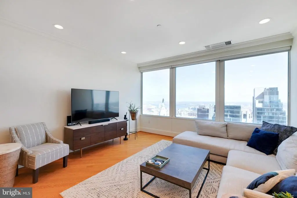 THE VIEW BELONGS TO YOU! - Enjoy spectacular panoramic city views from this magnificent two bedroom, two bath residence in the sky. The living and dining areas feature soaring ceiling heights, gleaming hardwood floors and walls of windows offering some of the most breathtaking skyline and sunrise views of the city. The chef’s kitchen showcases granite countertops, SUB-ZERO and MIELE appliances, and a convenient breakfast bar. The primary bedroom suite is generously proportioned and features ample closet space and an en-suite marble bathroom with double ceramic sinks and storage vanities, soaking tub, and a separate shower with glass enclosure. Association fees encompass a 24-hour concierge, chauffeur-driven car service, and access to a premier amenities floor featuring a state-of-the-art fitness center, an endless pool, a yoga studio, steam showers, and saunas. Residents will relish the lavish lounge with an entertainment area, gourmet kitchen facilities, card room, and conference rooms. Perfectly situated in the coveted Rittenhouse Square/Avenue of the Arts area, this pet-friendly residence is mere steps from fine dining, exclusive shopping, world-renowned cultural destinations, and vibrant nightlife.