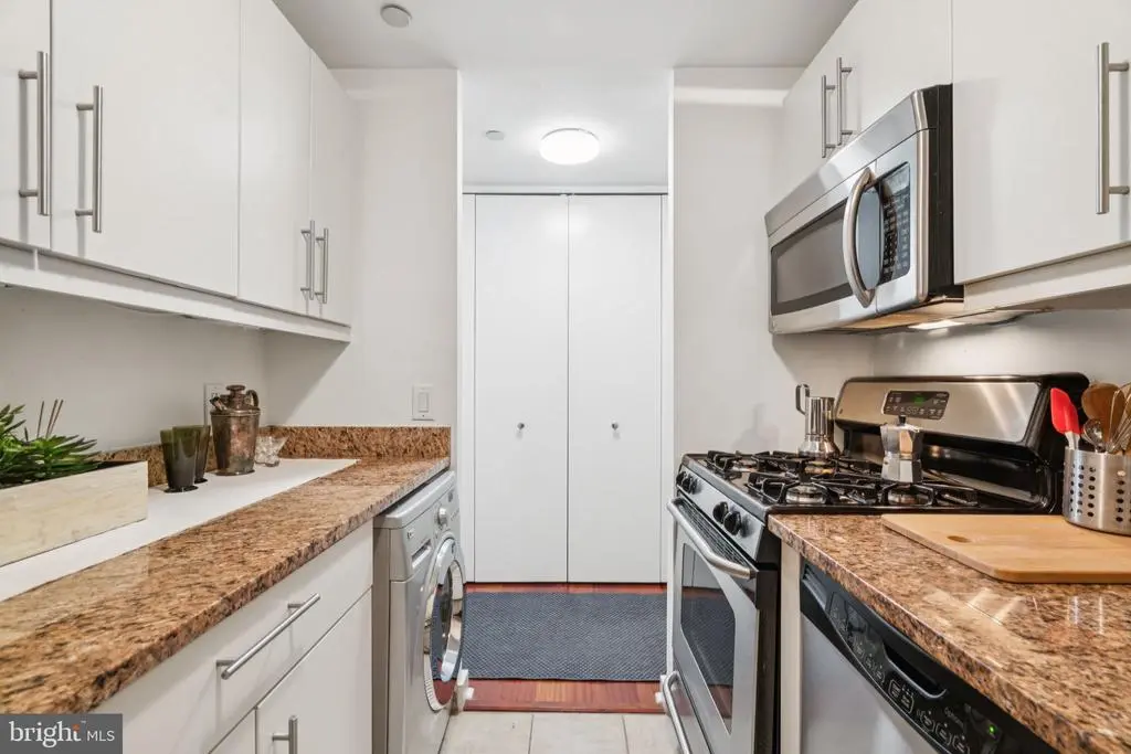 Graciously appointed one-bedroom home at Parc Rittenhouse offering a cozy retreat with high ceilings and practical, stylish layout and included in-building PARKING! The spacious living area features Brazilian Cherry hardwood floors, while the state-of-the-art galley-style kitchen boasts granite countertops, stainless steel appliances, tiled flooring, and under-cabinet lighting. The large bedroom includes plush carpeting, two excellent walk-in closets—including one with custom built-in organization—providing ample storage. A well-appointed bathroom features a Carrera marble vanity, a tub/shower combination, and Kohler ‘Purist’ fixtures. For ultimate convenience, the unit includes an in-unit dual LG washer/dryer, and a one-car PARKING license within the building - take the elevator from garage right to your floor. Residents enjoy top-tier amenities, including 24-hour door staff, a state-of-the-art fitness center, a resident lounge, a media room, a private theater, a conference room, additional laundry in the building, and a rooftop pool club with full-size pool, kids’ pool, hot tub, and a stunning sundeck with skyline views. This apartment is an ideal pied-a-terre, starter home or investment property, solid long time rental history. Perfectly situated directly on Rittenhouse Square, walk out your front door and right into the park. This home offers seamless access to world-class dining, shopping, and entertainment, with renown favorites such as Parc Restaurant (accessible downstairs in the lobby!), Via Locusta, Metropolitan Bakery, La Colombe, and much, much more! Don’t miss this incredible opportunity—schedule your showing today!