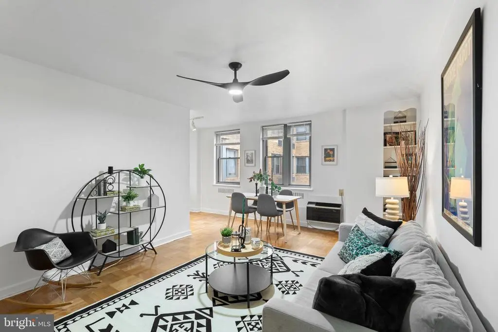 Spacious and pet-friendly, this light-filled 2-bedroom end unit in the beloved Fairmount neighborhood is sure to please! Be a part of history living in 2601 Parkway. The Art Deco building was designed by Paul Philippe Cret, who is considered one of the most influential architects of the first half of the twentieth century. His buildings and landmarks contribute to Philadelphia's essential character, including the Benjamin Franklin Bridge and the Rodin Museum. This unit offers over-sized living and dining areas with wood floors, coat closet, built-in bookshelves, and expansive windows. Each bedroom is roomy with great natural light and features double door closets. The kitchen has a gas stove and plenty of storage for all of your cookware. The bathroom has ceramic tile flooring, chrome fixtures, linen closet, and a vanity with storage. You'll love the convenience of the in-unit washer and dryer tucked neatly in a laundry closet that offers additional storage. 2601 Parkway offers many amenities including a Center City shuttle service, large fitness center, 24-hour front desk concierge service, on-site bike storage room, convenience store, plus a community room with free wi-fi, play area, and a fully functional kitchen for events. Also available are storage lockers, laundry room, dry cleaning service, and hair salon on-site. Ideally located across from the Philadelphia Museum of Art and Fairmount Park, this beautiful unit is close to Kelly Drive, Boathouse Row, The Barnes Museum, Whole Foods Market, Target, wonderful restaurants, and convenient transportation. Welcome Home!