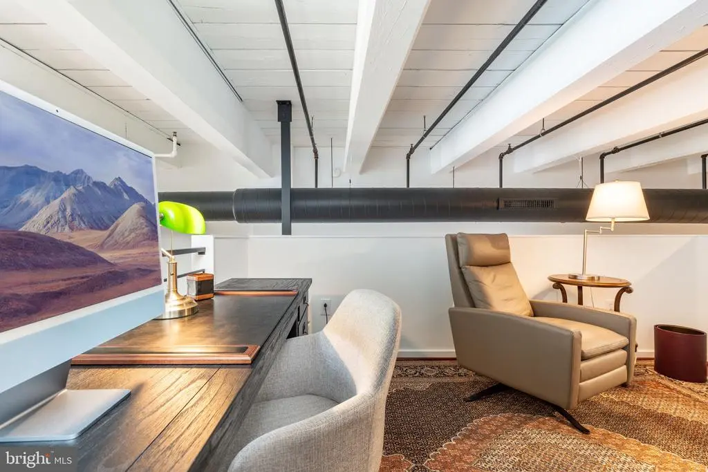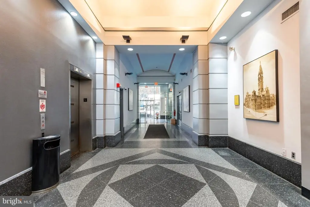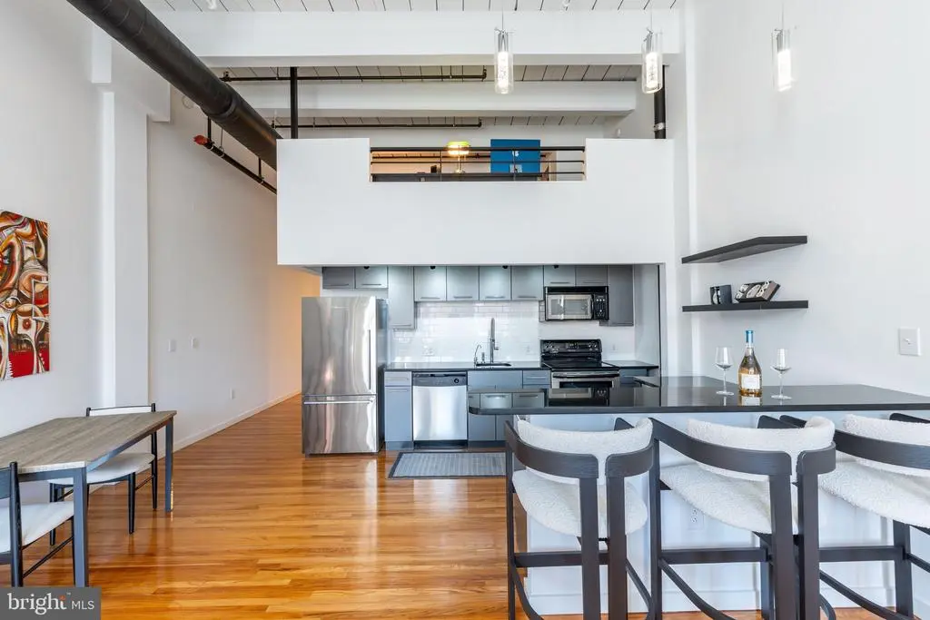 Step into the heart of Center City living at 1027 Arch Street Lofts, located within the historic Pitcairn Building. This stunning fourth-floor bi-level loft offers a sophisticated blend of New York-style design and modern upgrades, featuring two bedrooms and two bathrooms in a truly one-of-a-kind residence. Upon entering, you'll be captivated by the hardwood floors, exposed wood beams, and soaring 20-foot ceilings, with towering windows flooding the space with natural light and framing breathtaking views of the Philadelphia skyline. The main level features a spacious coat closet, an updated marble bathroom with a custom sink, jacuzzi tub, and a brand-new custom glass shower door, along with a guest bedroom with sleek bi-fold doors. The in-unit laundry roomwith a washer and dryer adds everyday convenience. The upgraded kitchen is a true beauty, featuring brand-new backsplash, stainless steel appliances, granite countertops, and a custom island with an integrated brand-new wine cooler and refrigerator—perfect for entertaining. The expansive living area boasts industrial-inspired lighting, fresh paint, and newly installed automated blinds from The Shade Store, adding both luxury and practicality. On the upper level, the primary suite offers an oversized closet, a newly updated ensuite marble bathroom with new vanities, toilets, sconces, and mirrors, and an additional custom storage area. A new barn door adds a modern touch to the downstairs room, enhancing both privacy and style. The brand-new hot water heater ensures efficiency and reliability for years to come. Residents enjoy access to a secured mail room in the lobby, bike storage in the basement, and the option to lease additional storage within the building. This pet-friendly building is ideal for an owner-occupant or long-term rental. With a walk score of 99%, convenience is unmatched. You're just steps from Jefferson Train Station, public transportation, and multiple parking garages, as well as the vibrant dining scene of Chinatown, Reading Terminal Market, Trader Joe’s, and the Fashion District Philadelphia. This is urban living at its finest—schedule your showing today!