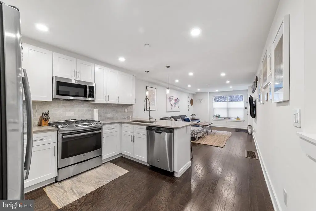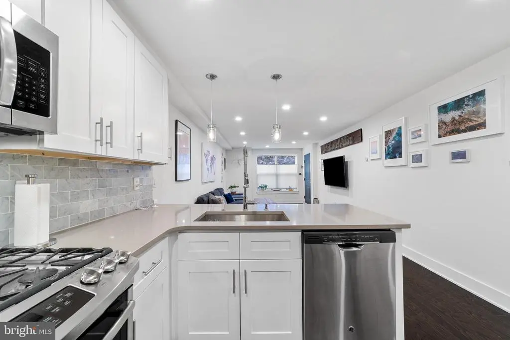 Step into the highly desirable neighborhood of Northern Liberties and claim this modern, lower-level unit as your own. Located at 970 N Marshall St, this contemporary home offers a secured entry, shared breezeway, and abundant street parking for your convenience. Upon entering, you’re greeted by an open-concept living space with engineered hardwood floors and ample natural light. The spacious living room seamlessly flows into the sleek, modern kitchen, featuring white shaker cabinets and gleaming countertops. This inviting space is perfect for entertaining guests. Off the kitchen, you’ll find a full bathroom and a versatile bedroom at the back of the home, currently set up as an office. This room boasts ample closet space and direct access to your own private patio, creating an outdoor oasis for relaxation. Heading downstairs, you’ll discover even more updates throughout. The lower level features a large bedroom, a full bathroom, and a convenient hallway closet with a stackable LG laundry unit. The highlight of this floor is the stunning primary suite, complete with an elegant ensuite bathroom that includes a tile shower, dual vanities, and a custom closet system designed to impress. Don’t miss the chance to make this meticulously maintained, move-in-ready home yours, with time still remaining on the tax abatement. The vibrant city of Philadelphia is calling—come make this sought-after Northern Liberties location your new home!