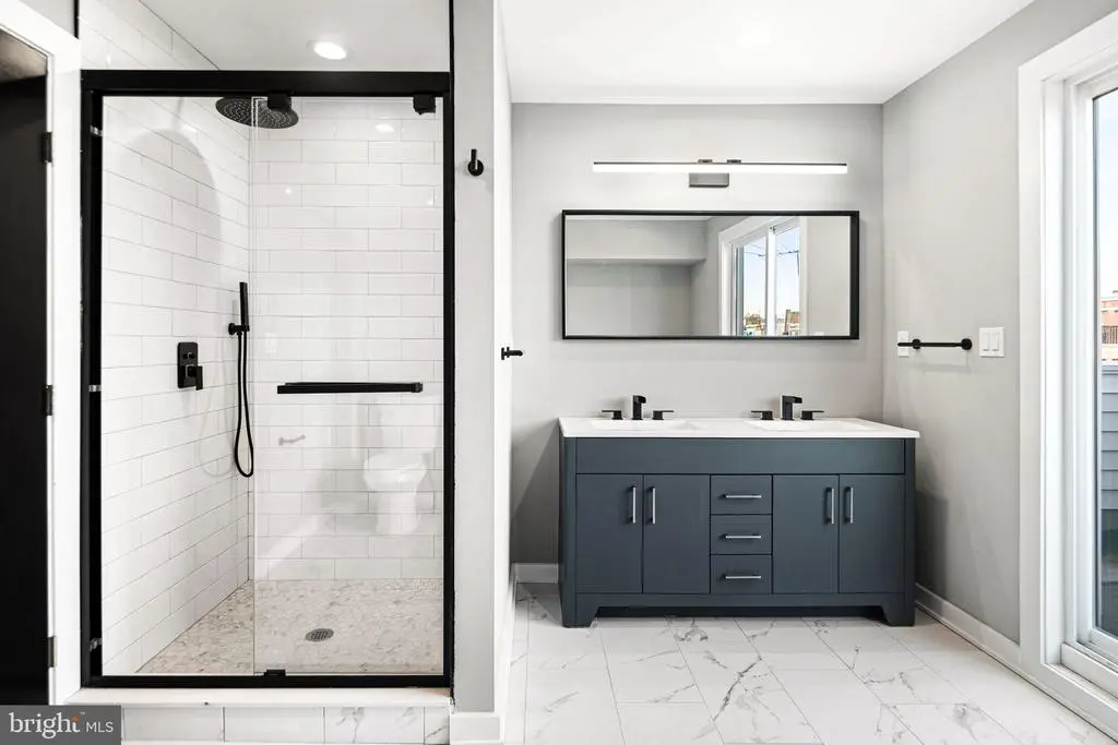 Welcome to 1329 Dickinson Street, a meticulously renovated 3-bedroom, 2.5-bath home offering over 2,800 square feet of luxurious living space in one of South Philadelphia’s most sought-after neighborhoods — just steps from the vibrant Passyunk Avenue corridor. From the moment you enter, you'll be captivated by the thoughtful design, high-end finishes, and seamless layout. The spacious open-concept main floor features wide-plank hardwood floors, recessed lighting, and a chef's kitchen equipped with quartz countertops, custom cabinetry, and top-of-the-line stainless steel appliances. Upstairs, you'll find three generously sized bedrooms, including a stunning primary suite with a feature wall of exposed brick, adding warmth and historic charm to the modern design. The suite also boasts a spa-like en suite bathroom and ample closet space. The fully finished basement adds valuable flexible living space — perfect for a media room, home gym, or office. Step outside to your private roof deck, ideal for entertaining or relaxing with sweeping views of the city skyline. All systems, mechanicals, and finishes are brand new — just move right in and enjoy! This is a rare opportunity to own a turnkey home just a short stroll from award-winning restaurants, cafes, boutiques, and parks in the heart of Passyunk Square. Schedule your private tour today and experience South Philly living at its finest.