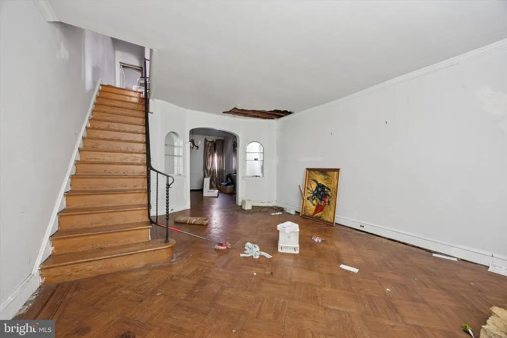 Don't miss this fantastic investment opportunity, right near LaSalle University! This charming tudor-style rowhome has interesting architectural details and great curb appeal. You'll notice the stone & brick façade, with a turret entryway featuring a slate roof. Walk through the iron gate, and into the home to find parquet wood flooring that will shine again with a bit of attention. Spacious main floor with lovely details such as crown molding, oversized trim, built-in shelves, and iron stairway railings. Attached 1-car garage plus one driveway parking space. Put your finishing touches on the rest of the home, and build your own equity with this affordable property. Great for an investor portfolio, or a first time homebuyer looking to add their own value and restore the whimsical details of this home. This property is a short-sale and is subject to 3rd party bank approval. The final deadline for submitting offers is tomorrow, April 15, 2025, at 5:00 PM. Please make sure to send in all offers by then.