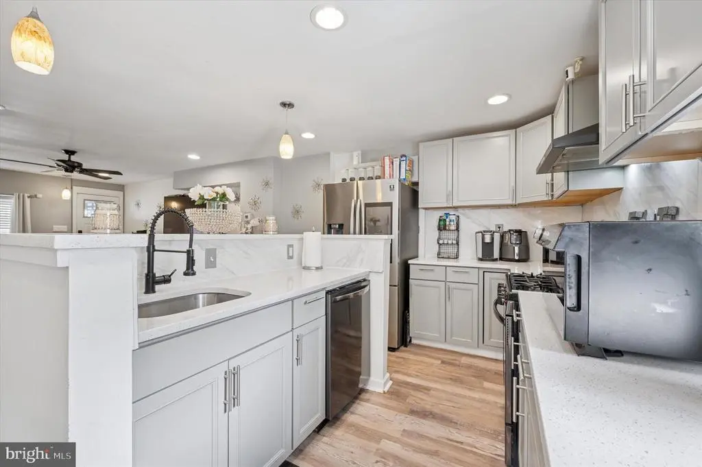 Welcome to 4534 Fernhill Rd, a beautifully updated townhouse nestled in the heart of Philadelphia's vibrant and historic Germantown neighborhood. This 3-bedroom, 2-bathroom home offers a perfect blend of classic charm and modern amenities, making it an ideal choice for those looking to enjoy both comfort and convenience. Step into the spacious living area featuring gleaming hardwood floors, recessed lighting, and an inviting ambiance. The open floor plan seamlessly flows into a dining area with a decorative fireplace, providing the perfect space for entertaining or relaxing with family. The updated kitchen is a chef's dream, complete with modern cabinetry, sleek stainless steel appliances, and easy access to a rear deck—perfect for outdoor dining or enjoying the fresh air. Upstairs, you'll find three generously sized bedrooms, each with ample closet space to accommodate all your needs. The full bathroom is tastefully renovated with contemporary fixtures, offering both style and functionality. The fully finished basement adds even more versatility to this home, featuring a family room with built-in shelves and a second full bathroom. This space is perfect for an in-law suite, home office, or additional living area. The basement also features convenient walk-out access to the back, making it easy to drive up to your home. A private deck off the back provides extra storage and a designated area for trash storage, adding even more practical space for your convenience. Located in the sought-after Germantown neighborhood, this home is just steps away from Fernhill Park, where you can enjoy beautiful green spaces. Convenient access to public transportation, including multiple SEPTA bus routes, makes commuting a breeze. Plus, you'll have access to excellent schools in the area, including John Wister Elementary and Martin Luther King High School. With its blend of historic charm, modern upgrades, and unbeatable location, 4534 Fernhill Rd is truly a gem. Don’t miss your chance to make this house your home!