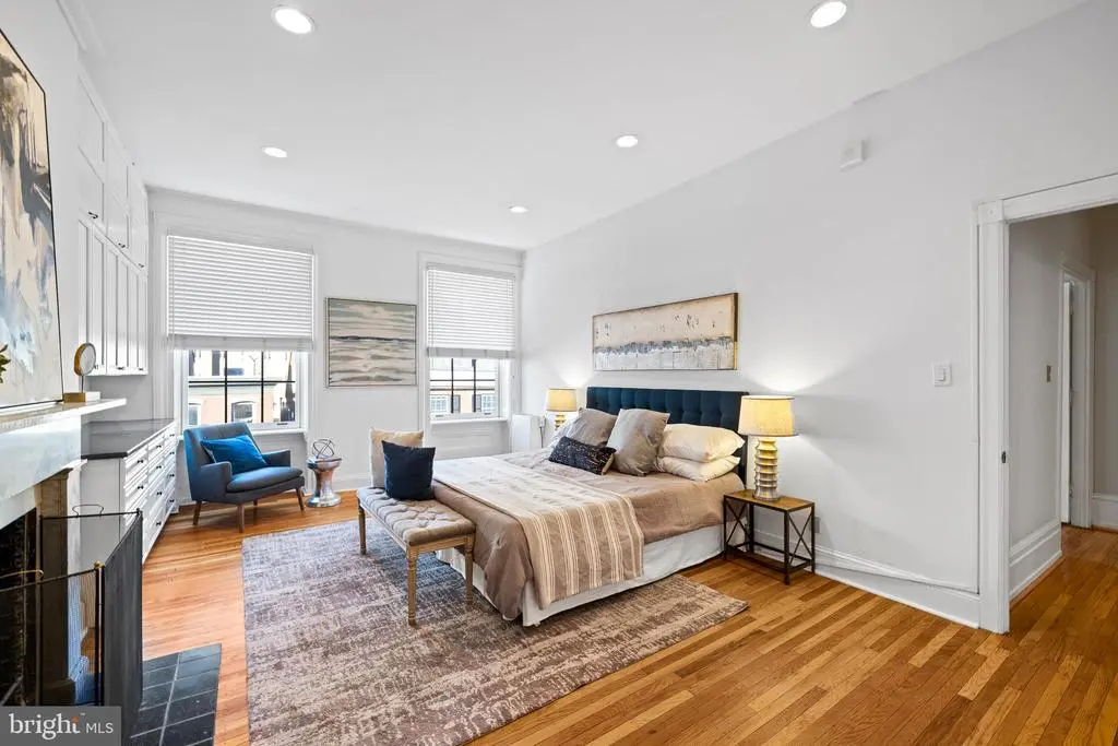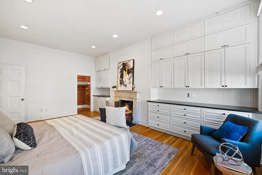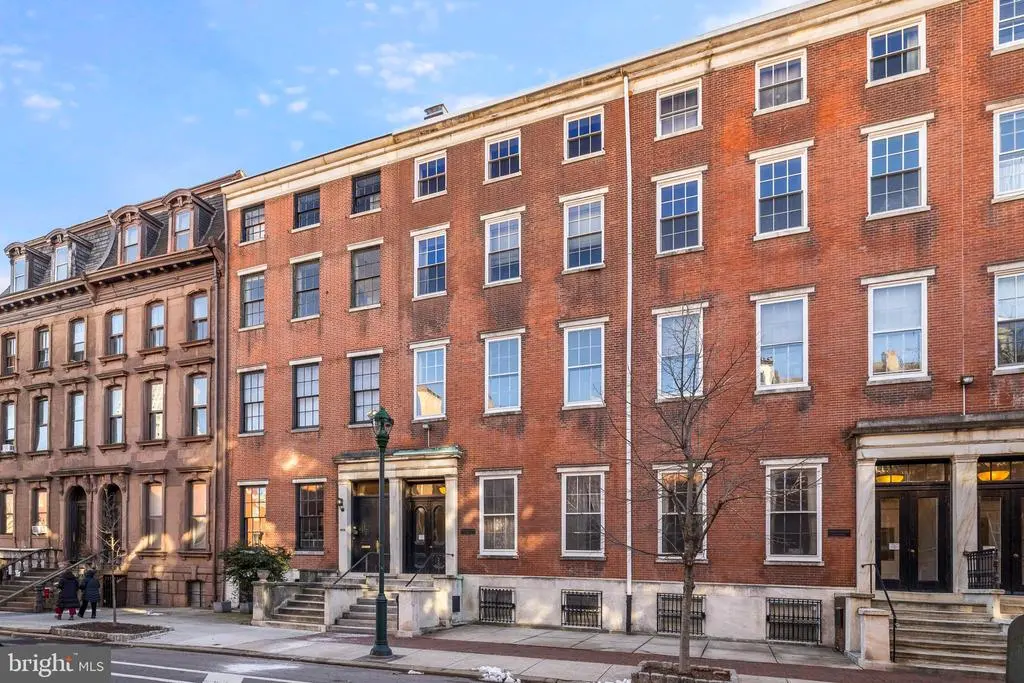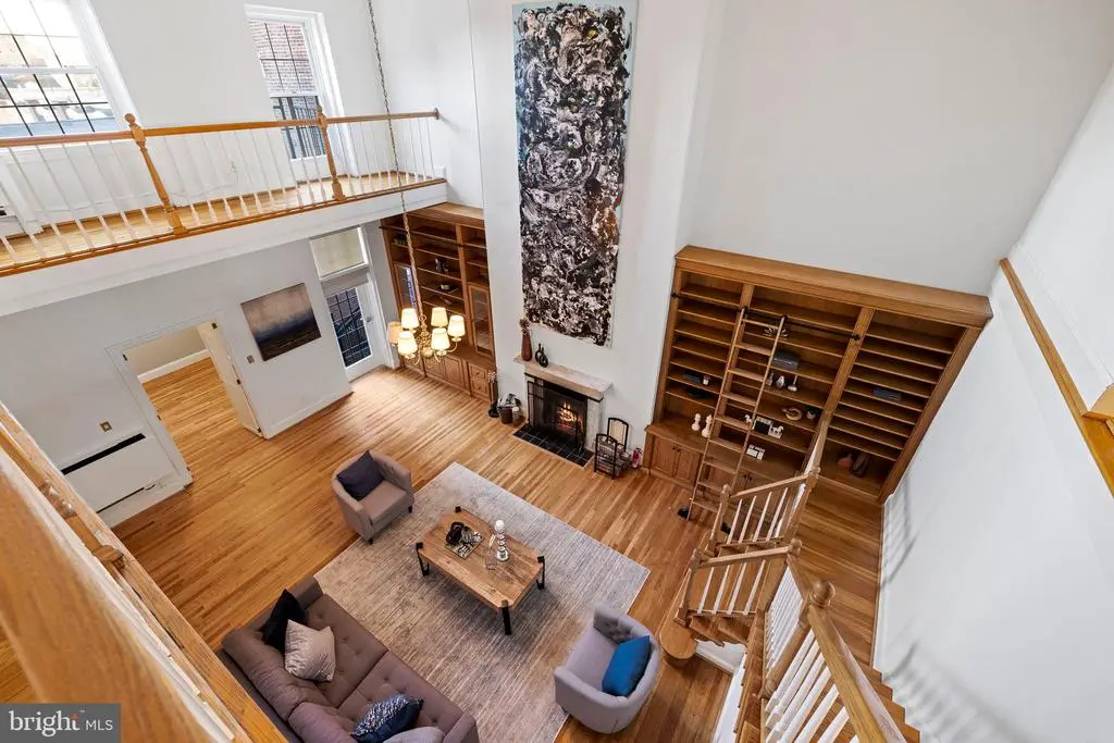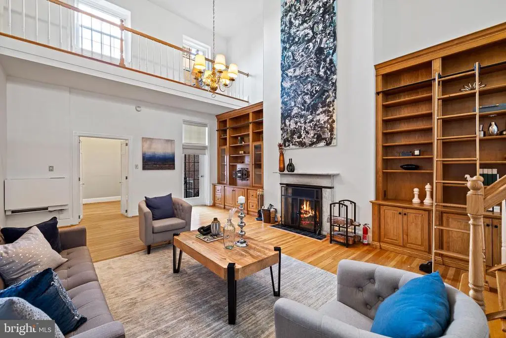Incredibly spacious bi-level home with beautiful original details and custom finishes in the historic Strickland Row. This beautifully appointed two bedroom, one bathroom home is on the third floor of 1008 Spruce Street at Strickland Row, located on a tree-lined street of Washington Square West. Enter through a secure double door entrance and walk up to the third floor to access the residence. Upon entering, you are greeted with an elongated foyer boasting a high ceiling and ornate moldings that leads to the bedrooms and living room. The grand living room features a soaring ceiling, wood-burning fireplace with marble surround, beautiful built-in display shelving and storage, coat closet, and ornate staircase leading to the lofted second floor. There is a den/study off of the living room with French doors, perfect for a work-from-home office. On the other end of this floor is the spacious primary bedroom with oversized windows, custom built-ins, fireplace, recessed lighting, and walk-in closet. Adjacent is the generously sized second bedroom with excellent natural light and large wall closet. Both enjoy use of a full hall bathroom with tub shower. The lofted second floor features a wrap around balcony overlooking the living room with large windows and row of closets, as well as an open dining room and eat-in kitchen. The expansive dining room enjoys beautiful natural light from two oversized windows, a fireplace, built-in storage bench, and ample space for an additional living area, making it ideal for entertaining. The galley-style kitchen features light wood cabinetry, granite countertops, stone tile backsplash, stainless steel appliances, tile floor, and a breakfast nook. Additional home highlights include in-unit laundry, custom light fixtures, incredible closet and storage space, beautiful trim and moldings, and wood floors throughout. This condo complex was named after the famous Philadelphian Architect William Strickland. Residents of Strickland Row enjoy an outdoor heated community pool, landscaped courtyard, roof deck, BBQ area and on-site laundry facility. Strickland Row is located in Washington Square West, a convenient location steps from world-class shopping, dining, theater and historical institutions. Public transportation is easily accessible and Amtrak's 30th Street Station and the Philadelphia International Airport are only minutes away. SELLER IS OFFERING TO PAY $1,000 PER MONTH TOWARDS CONDO FEES FOR THE FIRST 24 MONTHS (A $24,000 VALUE)!!